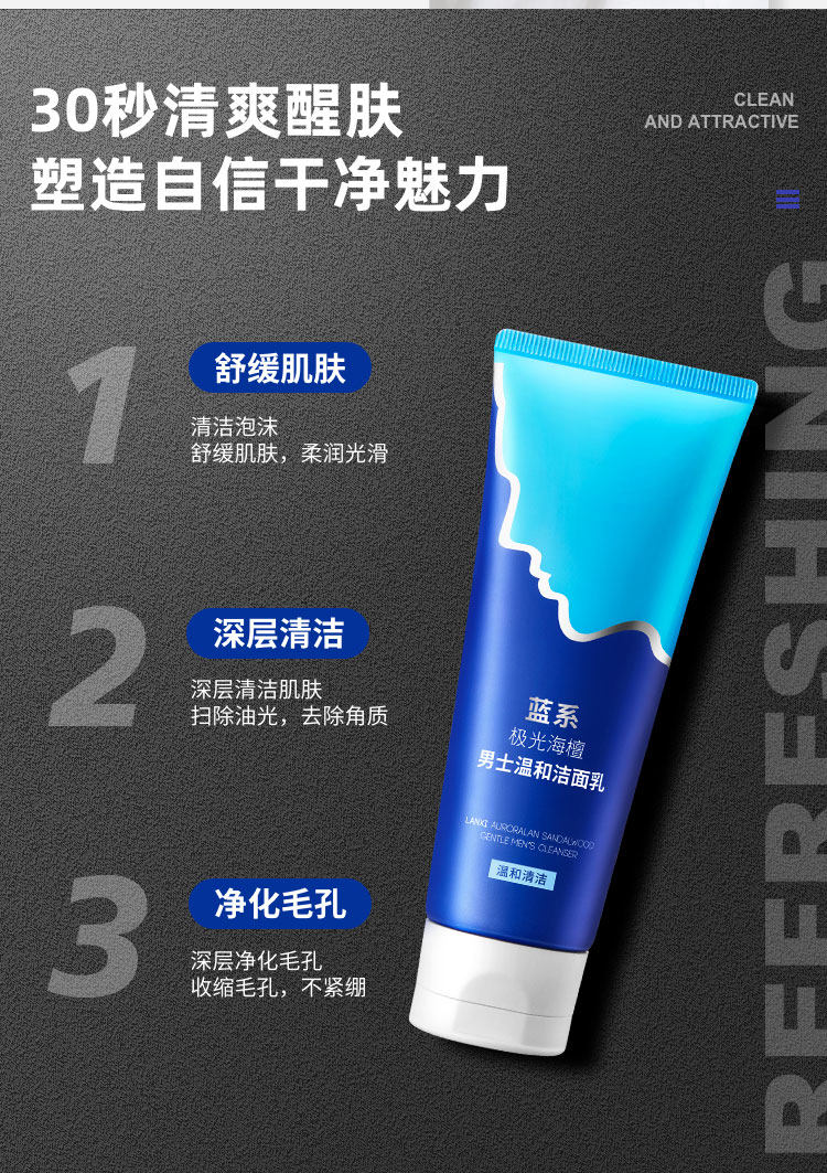 蓝系!极光海檀男士温和洗面奶