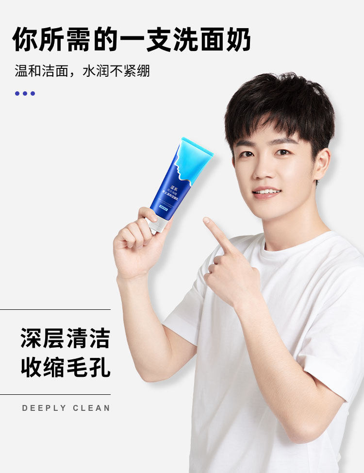 【蓝系】告别邋遢大叔风,洗出小鲜肉颜,男士洗面奶用起来!专为男士肌肤设计,温和清洁肌肤多余油脂,持久控油,清爽不油腻!温和不刺激,控油效果很好,清爽干净了,整个人都精神不少!【破损可换】