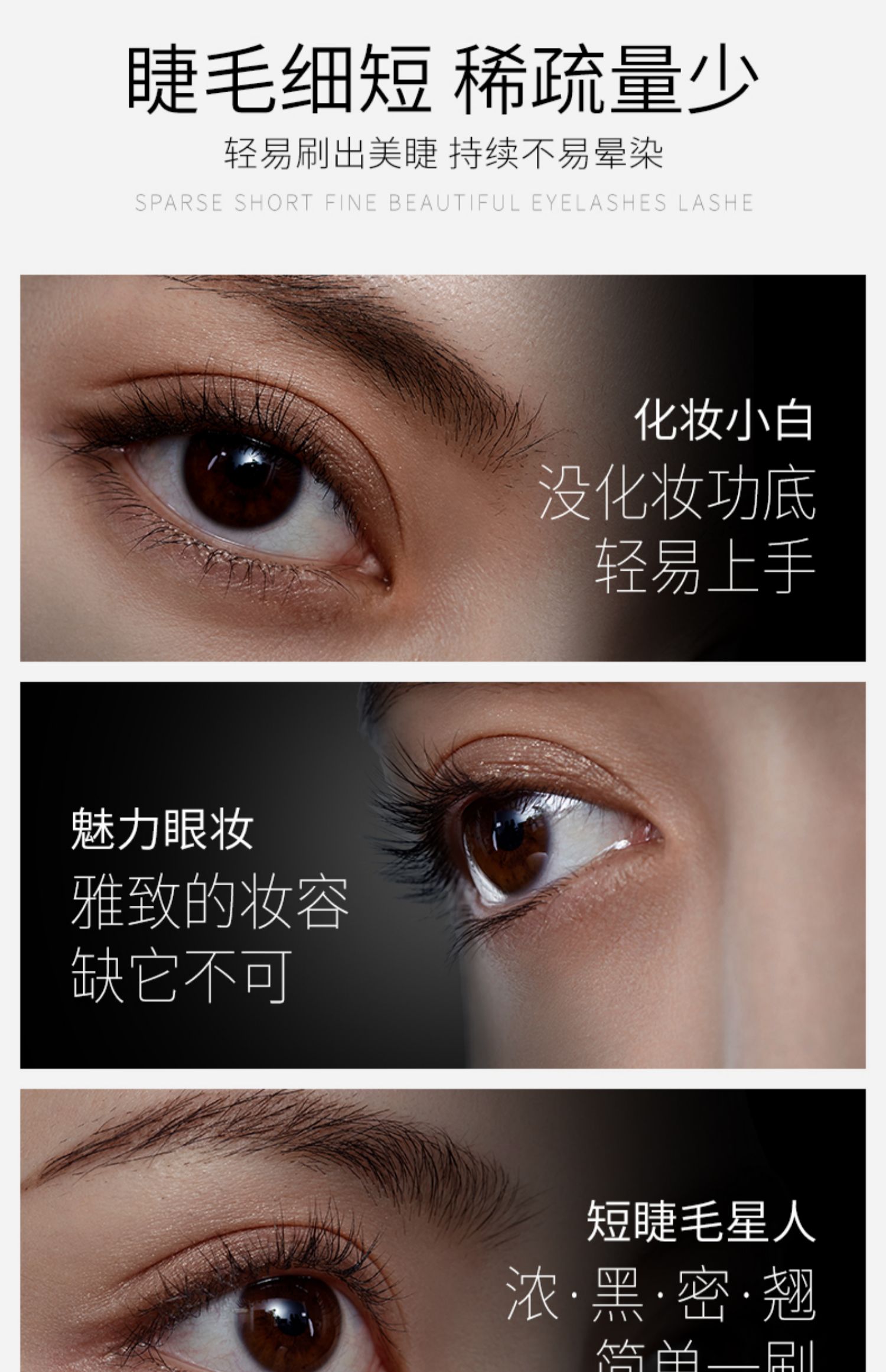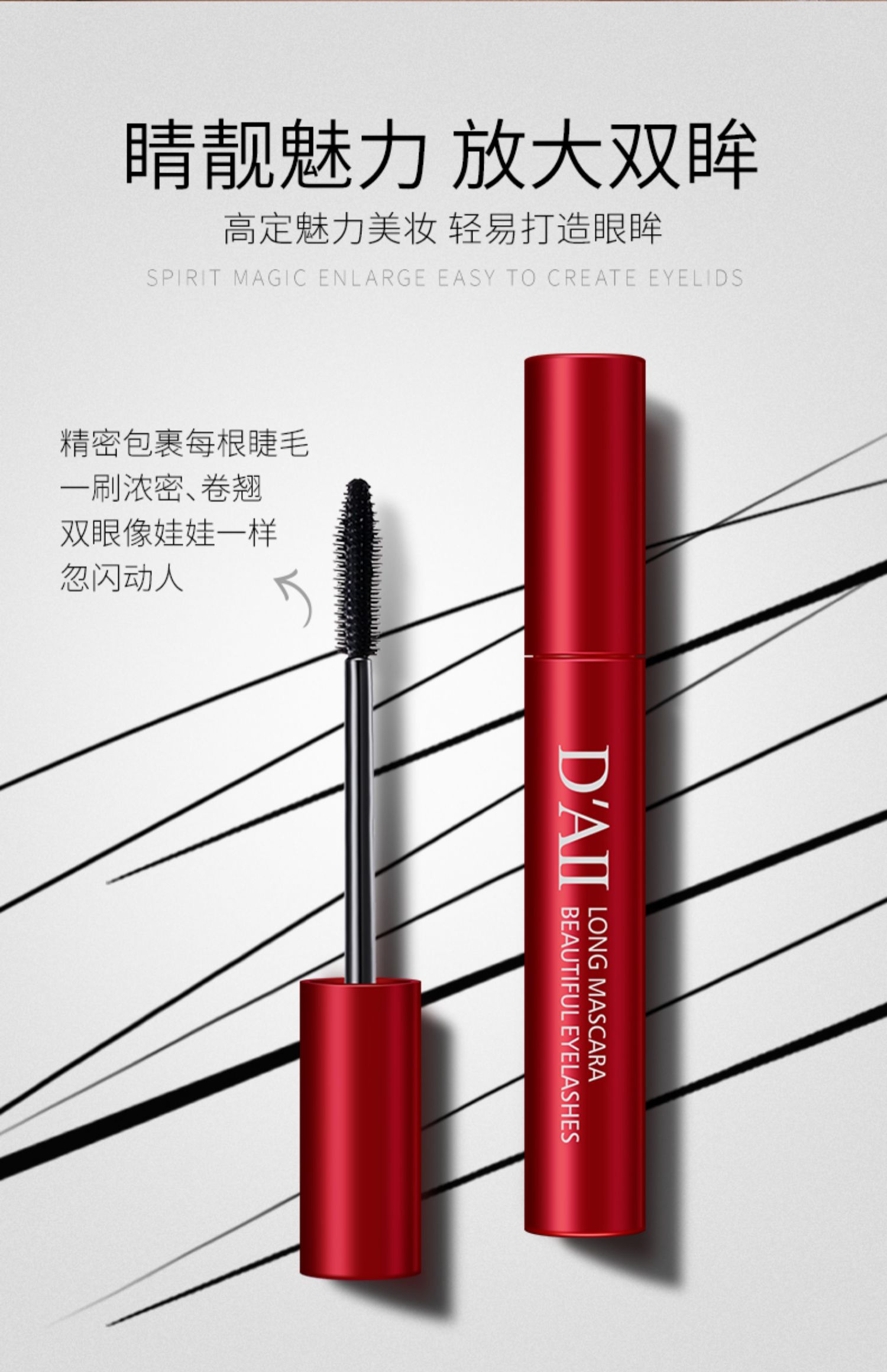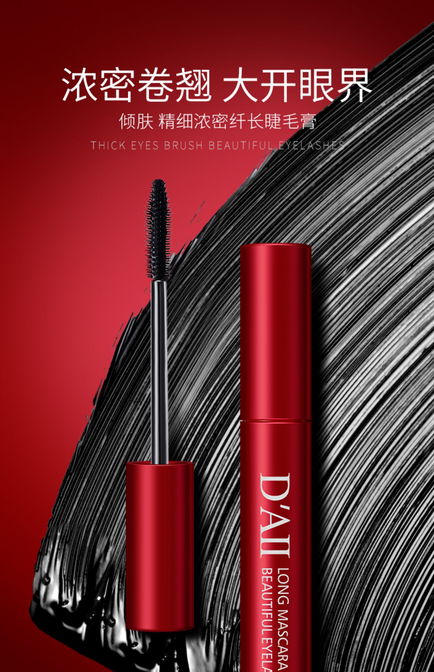 打造迷人电眼~全天防晕妆睫毛膏,精细刷头,一刷浓密纤长还卷翘!防水不晕染,让你全天绽放灵动大眼睛!魅力动人。