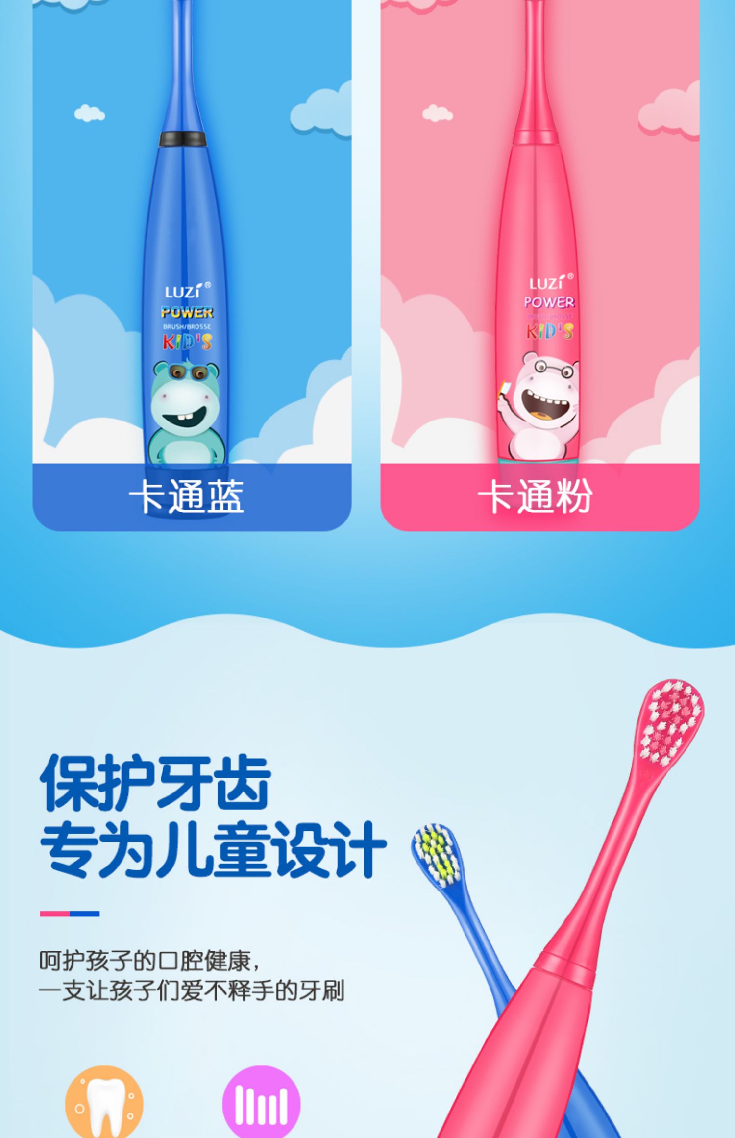 绿姿儿童软毛电动牙刷3-6-12岁