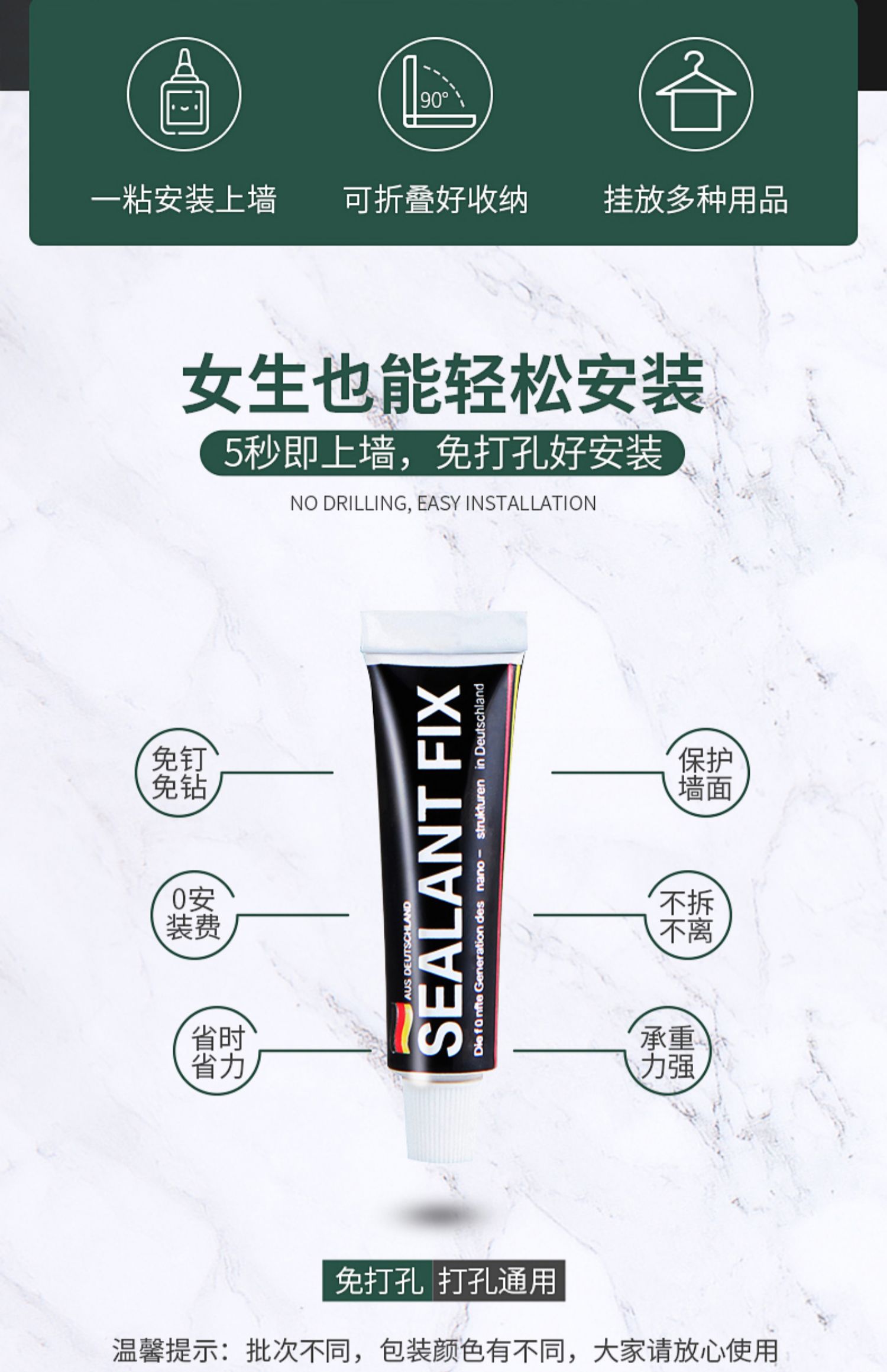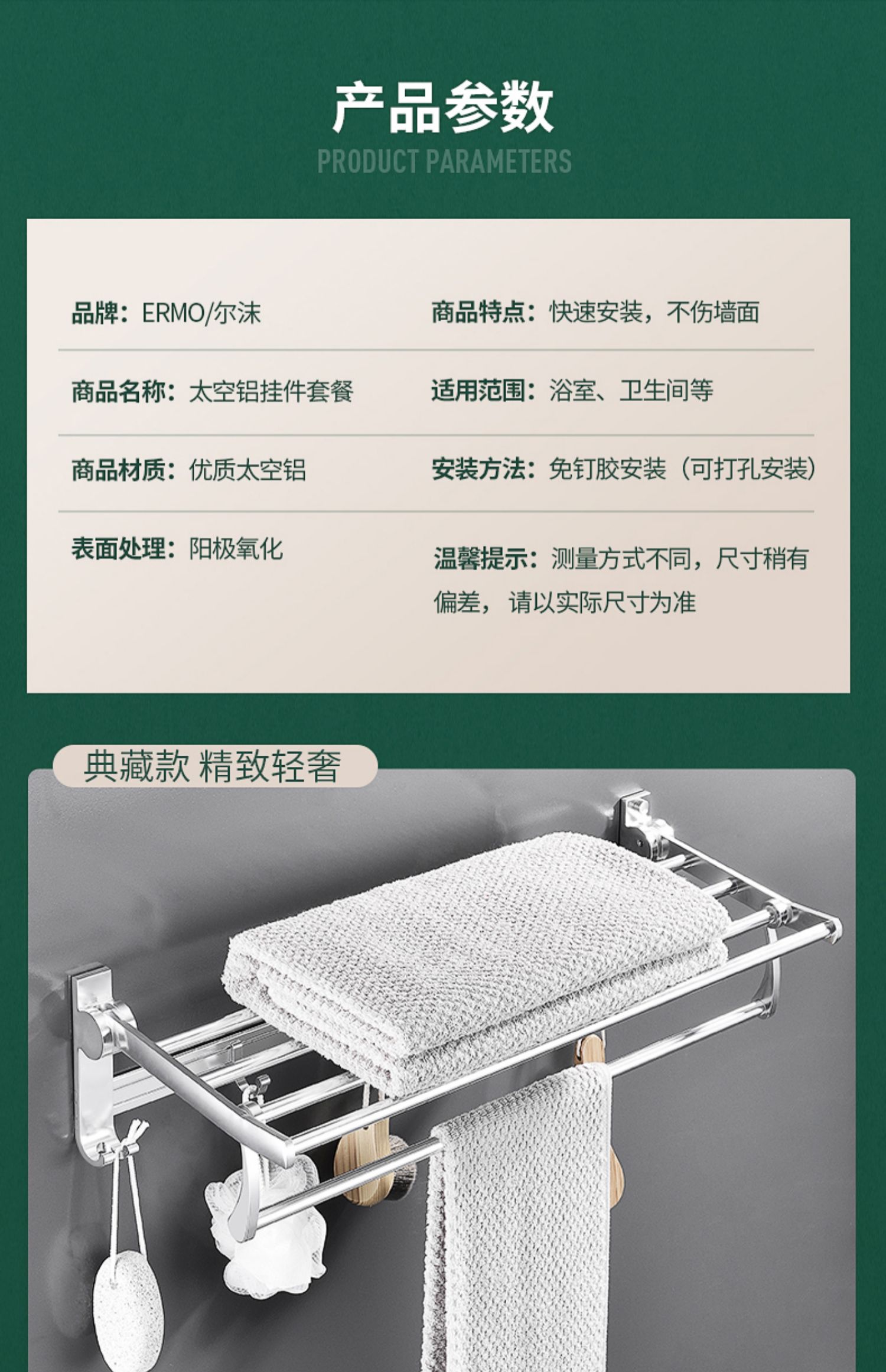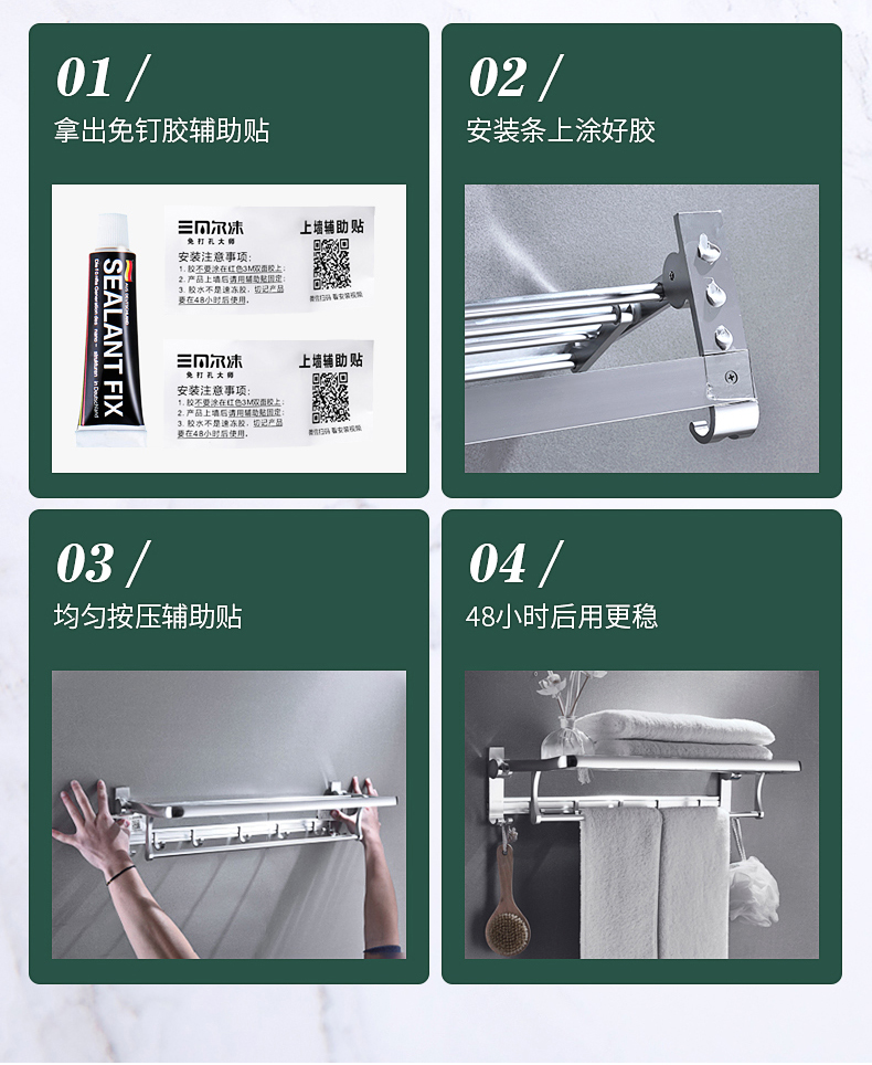 德国技术,免打孔,航空铝材,生锈包换不易生锈,无需打孔【配送免钉胶】快速安装,承重力强,防水防潮~轻松收纳整齐,告别凌乱~【赠运费险】