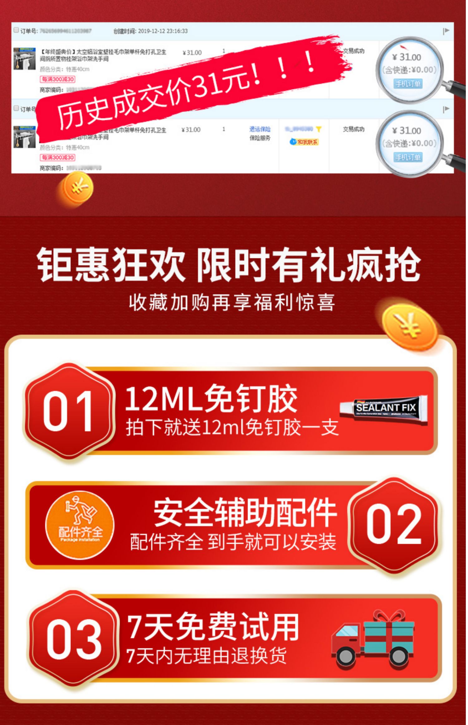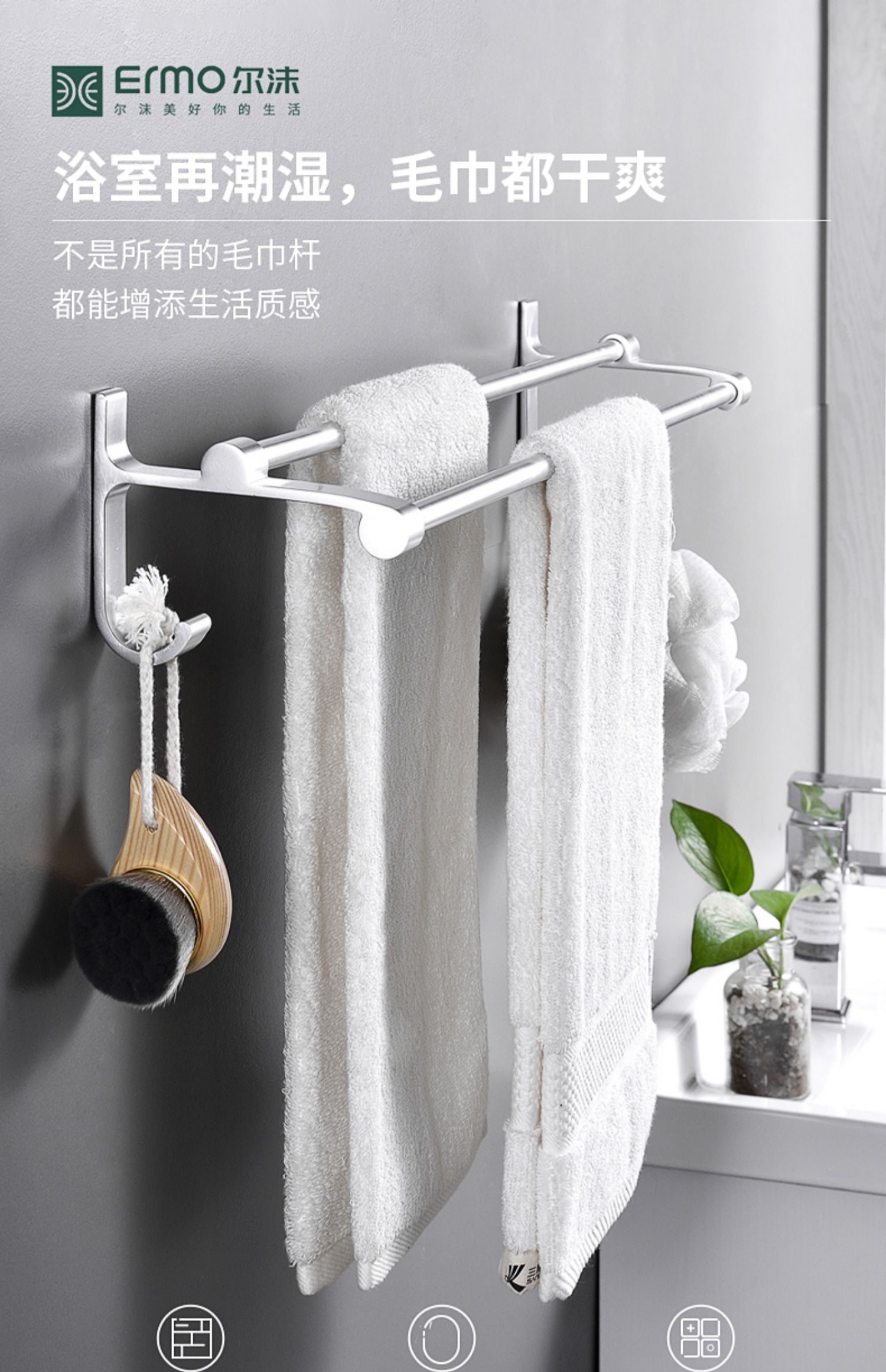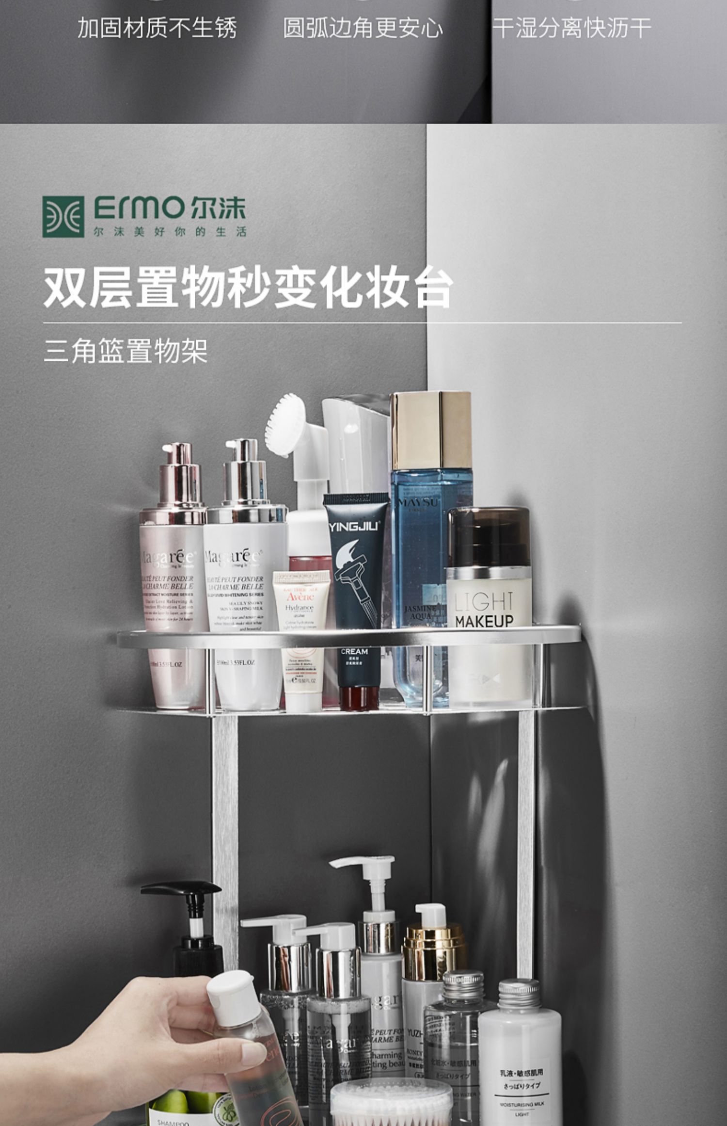 德国技术,免打孔,航空铝材,生锈包换不易生锈,无需打孔【配送免钉胶】快速安装,承重力强,防水防潮~轻松收纳整齐,告别凌乱~【赠运费险】