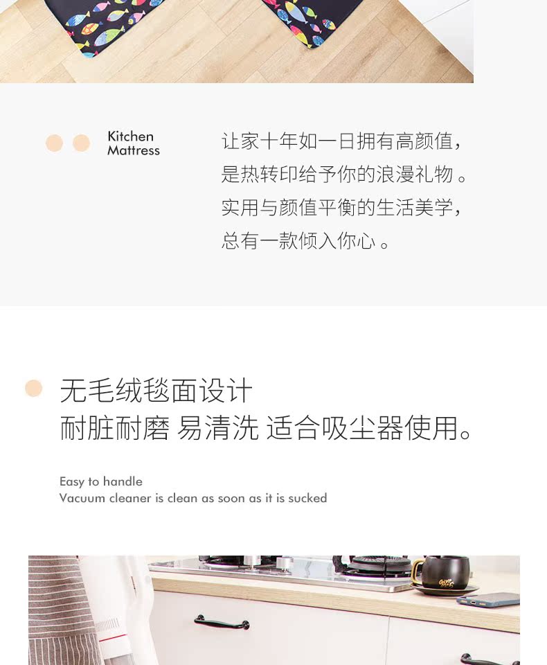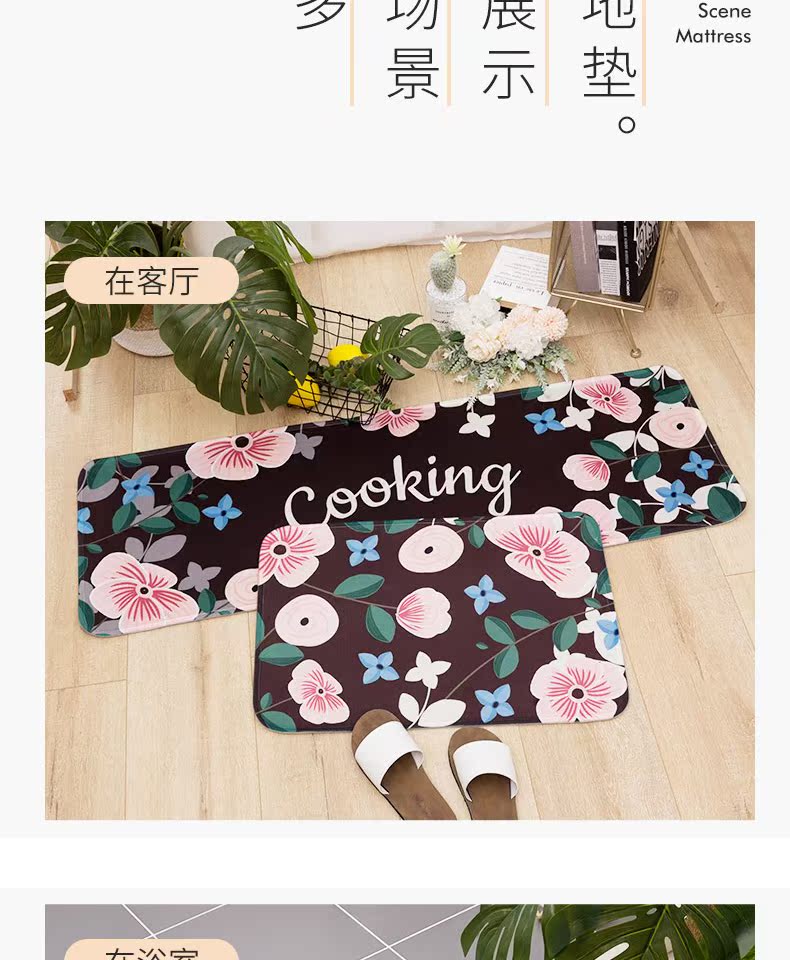 吸水吸油防滑,多种样式颜色任你选,优质硬绒毛,脚感舒适,TPR底强力防滑,环保无异味,任意裁剪无需锁边,让厨房地板远离油【赠运费险】