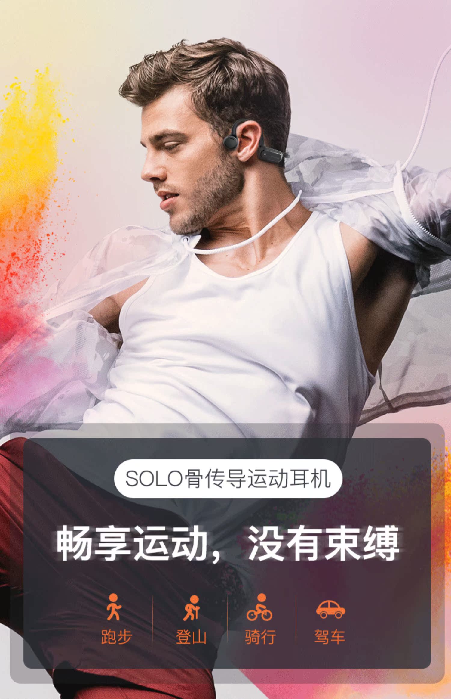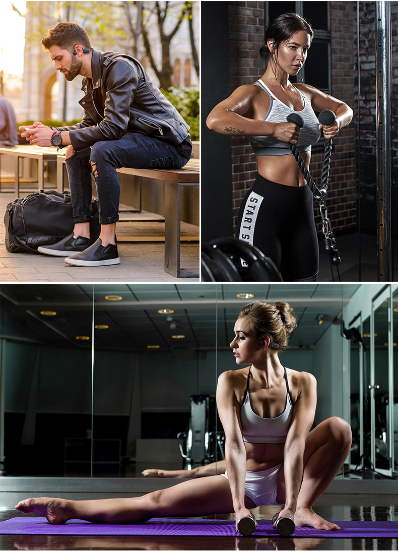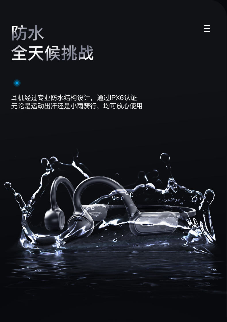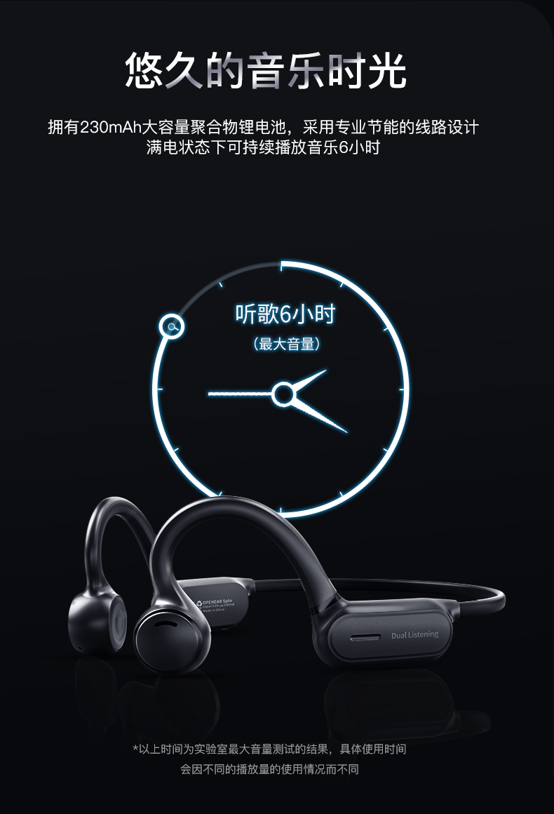 骨传导式,久戴不痛,环绕音效,防汗防水,采用健康设计理念,高清通话,无耳塞,不入耳真无痛佩戴,戴眼镜也无影响,值得信赖!