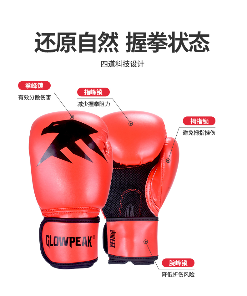 【glowpeak旗舰店】品牌直销,训练拳套男女!环保材质,多重保护,炫酷外观。松紧套戴设计,透气网格!还品质看得见,抗击打,柔韧性强。全面保护。天猫品质保证~