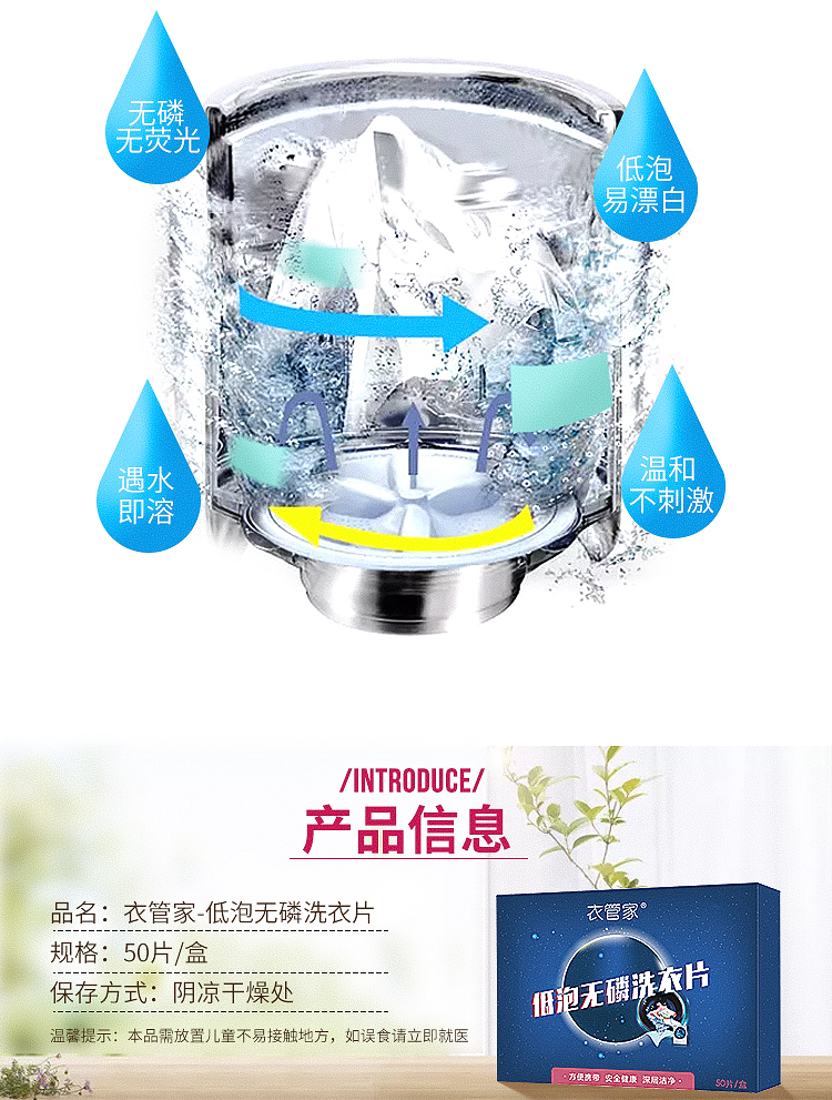 低泡无磷洗衣片,一片可洗6斤衣物,冷热水即溶,纳米超浓缩,无荧光剂,强力去污,深层洁净,植物提取精华,温和不伤手,家居必备!无限回购~速度抢!