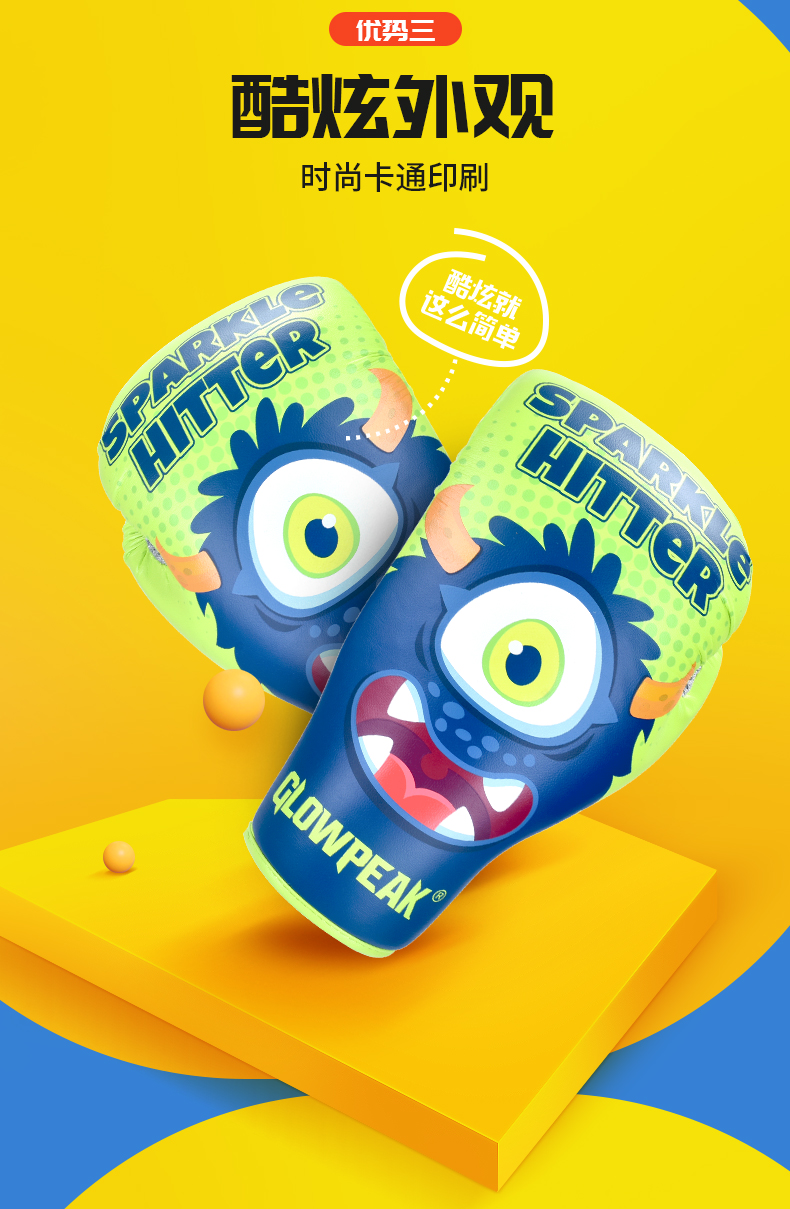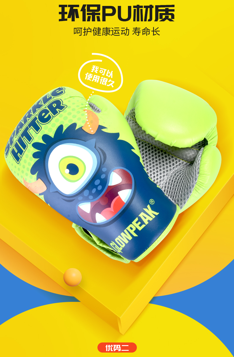 【glowpeak旗舰店】品牌直销,儿童拳击手套卡通,促进孩子玩耍中锻炼身体,训练拳套男女!环保材质,多重保护,炫酷外观。透气网格!还品质看得见,给孩子用,不能将就。