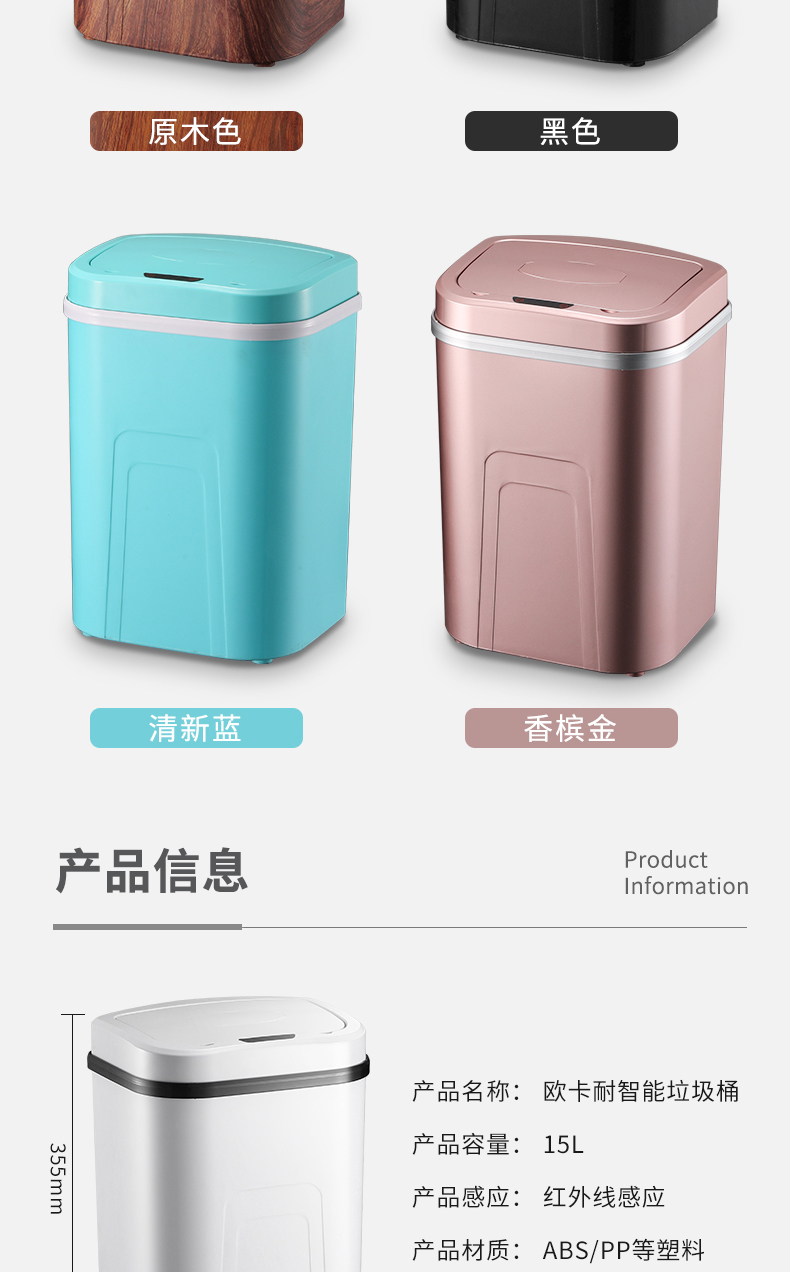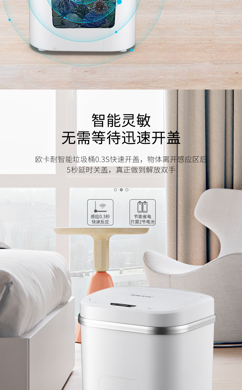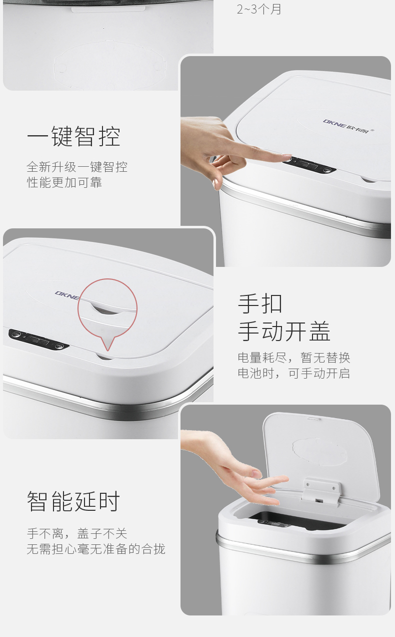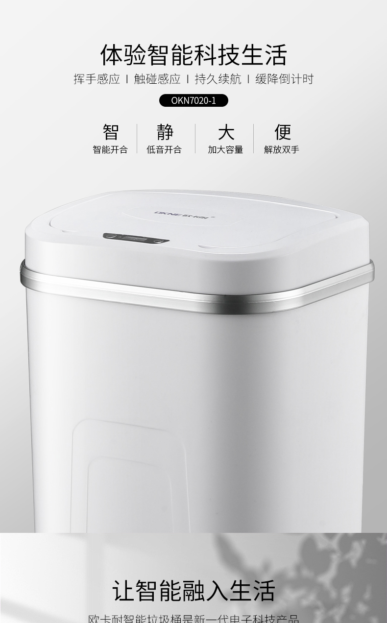 【OKNE/欧卡耐】高颜值智能垃圾桶,自动感应,静音开合,更人性化的感应距离,自适应延时闭合技术,智能科技,简单生活,15L大容量.