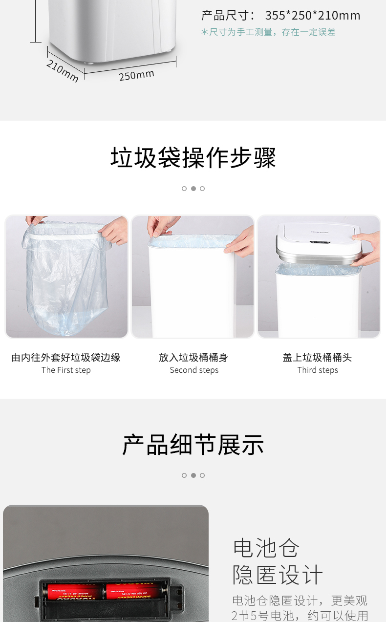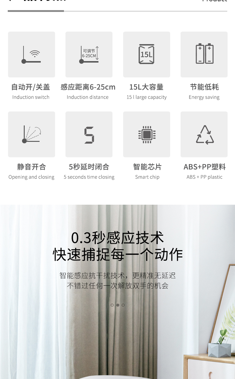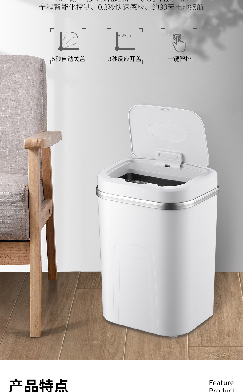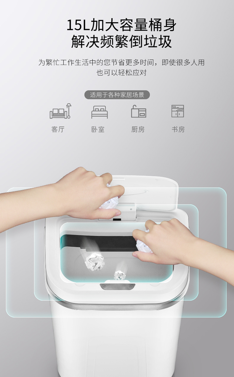 【OKNE/欧卡耐】高颜值智能垃圾桶,自动感应,静音开合,更人性化的感应距离,自适应延时闭合技术,智能科技,简单生活,15L大容量.