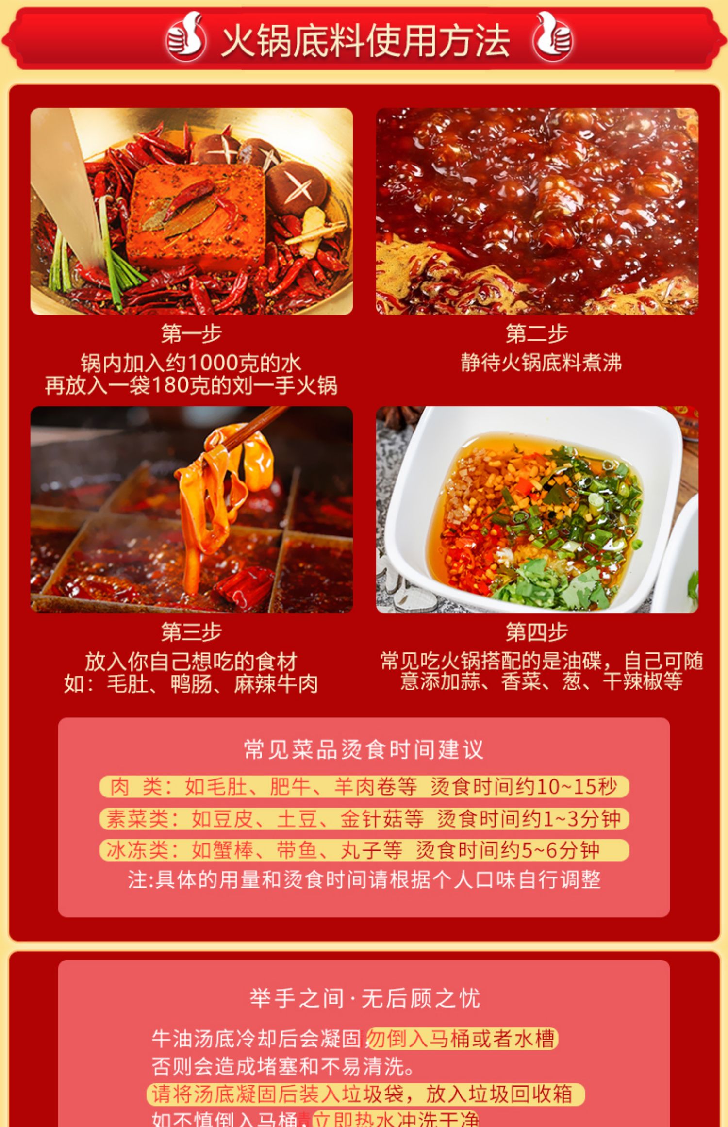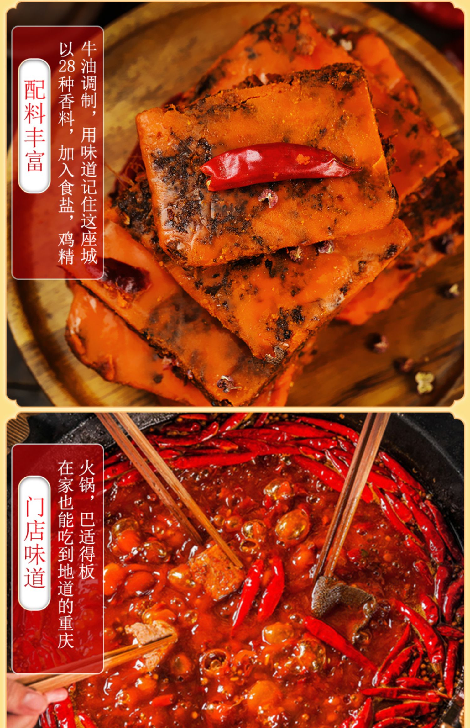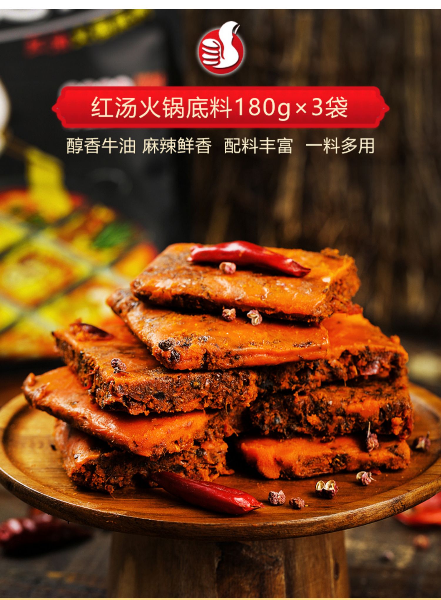正宗川味火锅底料3袋,十几种秘制香料+新鲜优质牛油,匠心熬制15小时,麻辣鲜香,回味绵长,麻辣肉片、冒菜、干锅火锅,怎么吃都好吃,发汗祛湿,吃的过瘾!