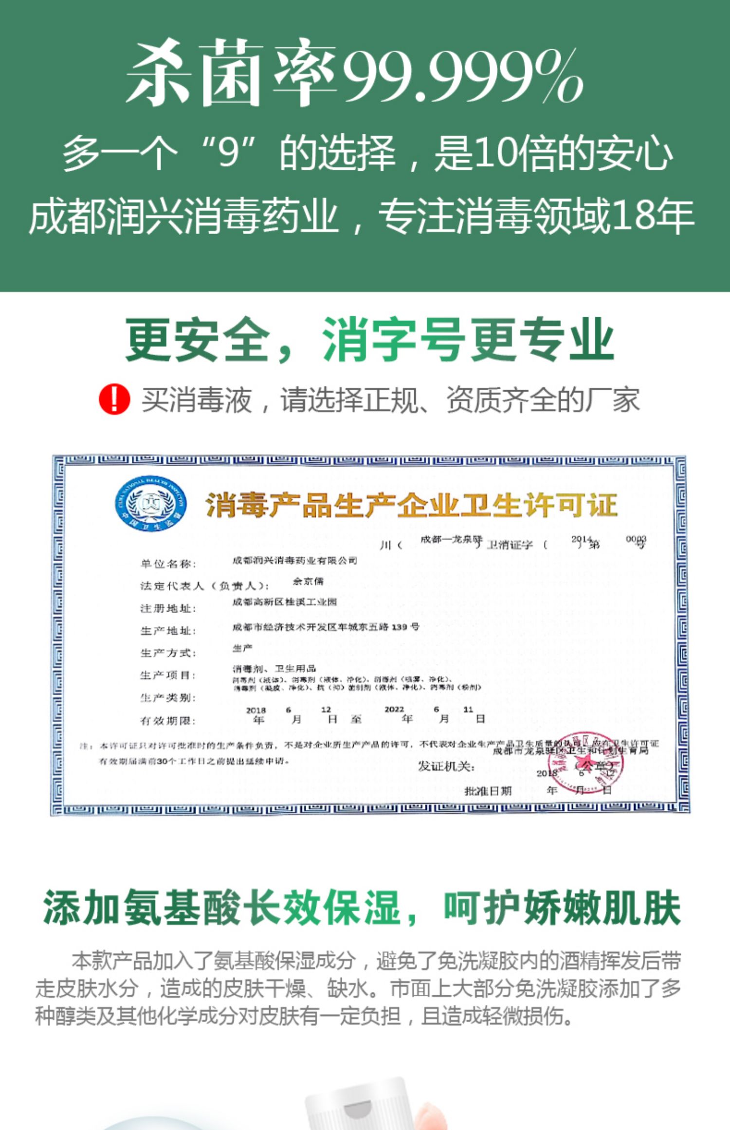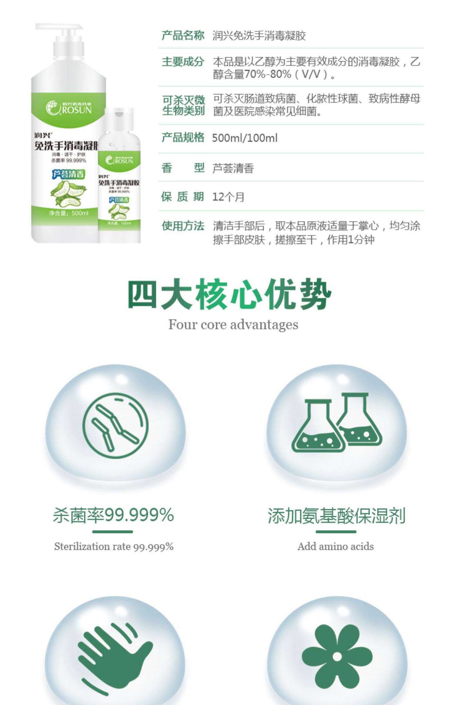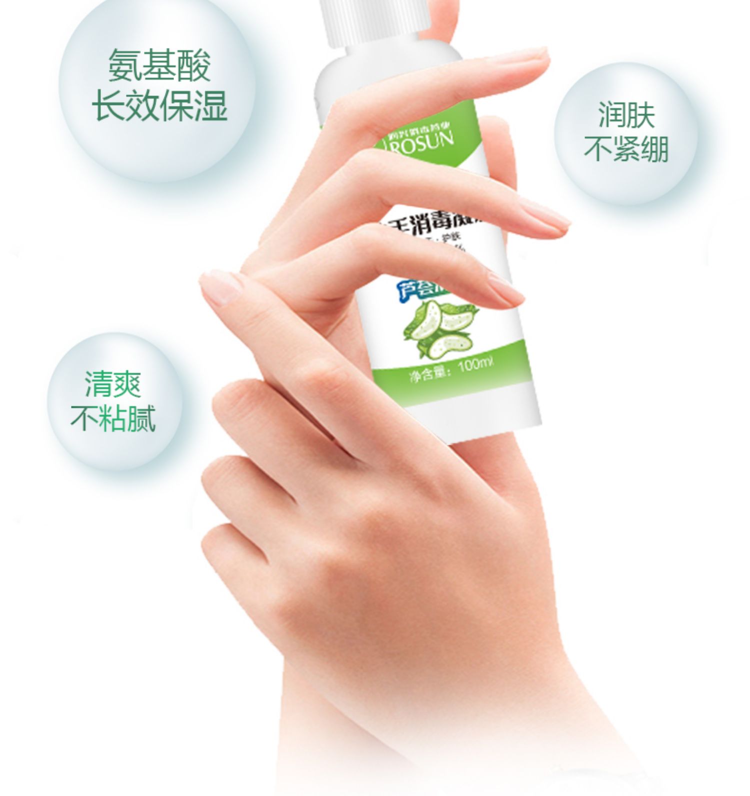 添加氨基酸长效保湿,呵护轿内肌肤!手感滋润,“手”护健康!四大核心优势!洗后放心吃东西!小巧便携!免洗速干不粘手!【赠运费险】