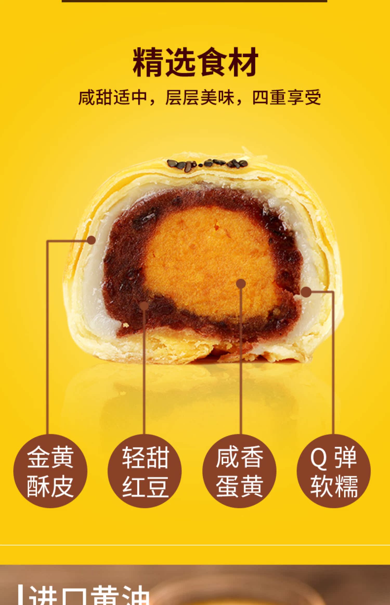 整颗蛋黄+网红雪媚娘,金黄表皮,散发着浓浓蛋香气~蛋黄咸香,口感酥软细腻,层层的口感,引爆你的味蕾,大人小孩都可吃!!!