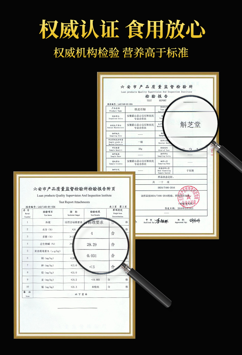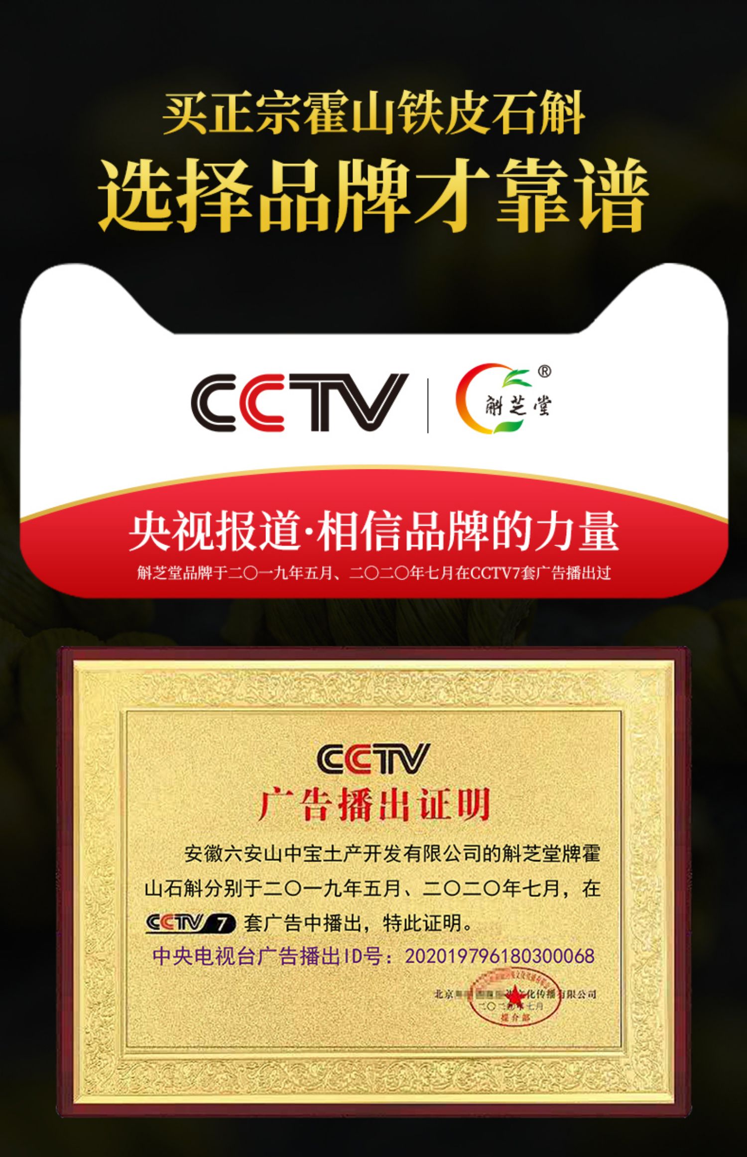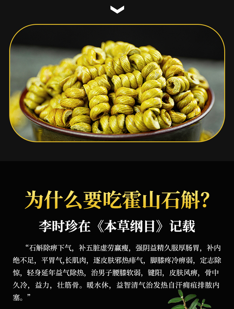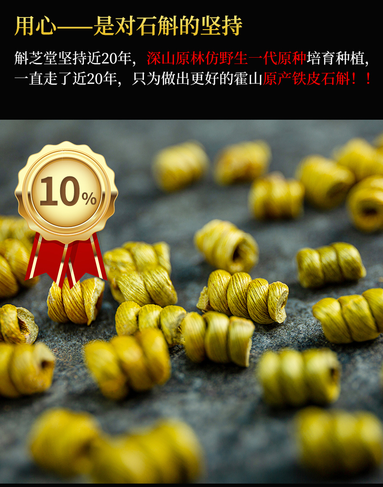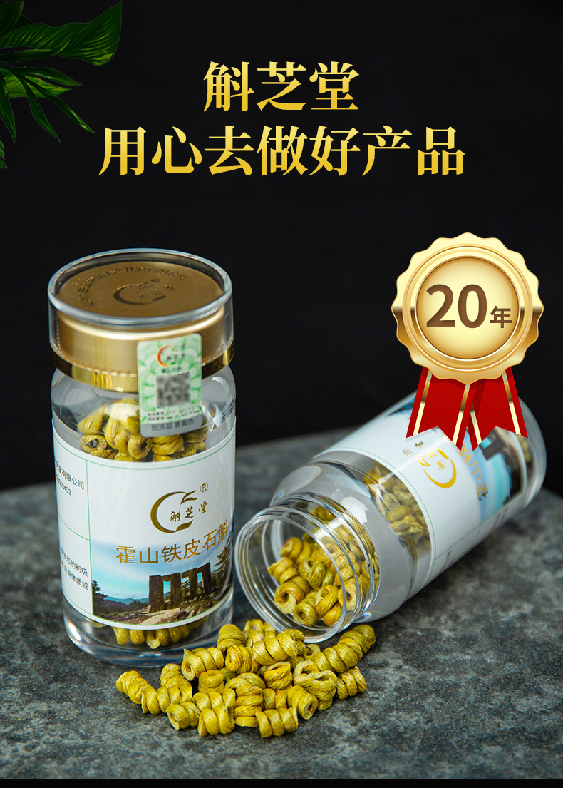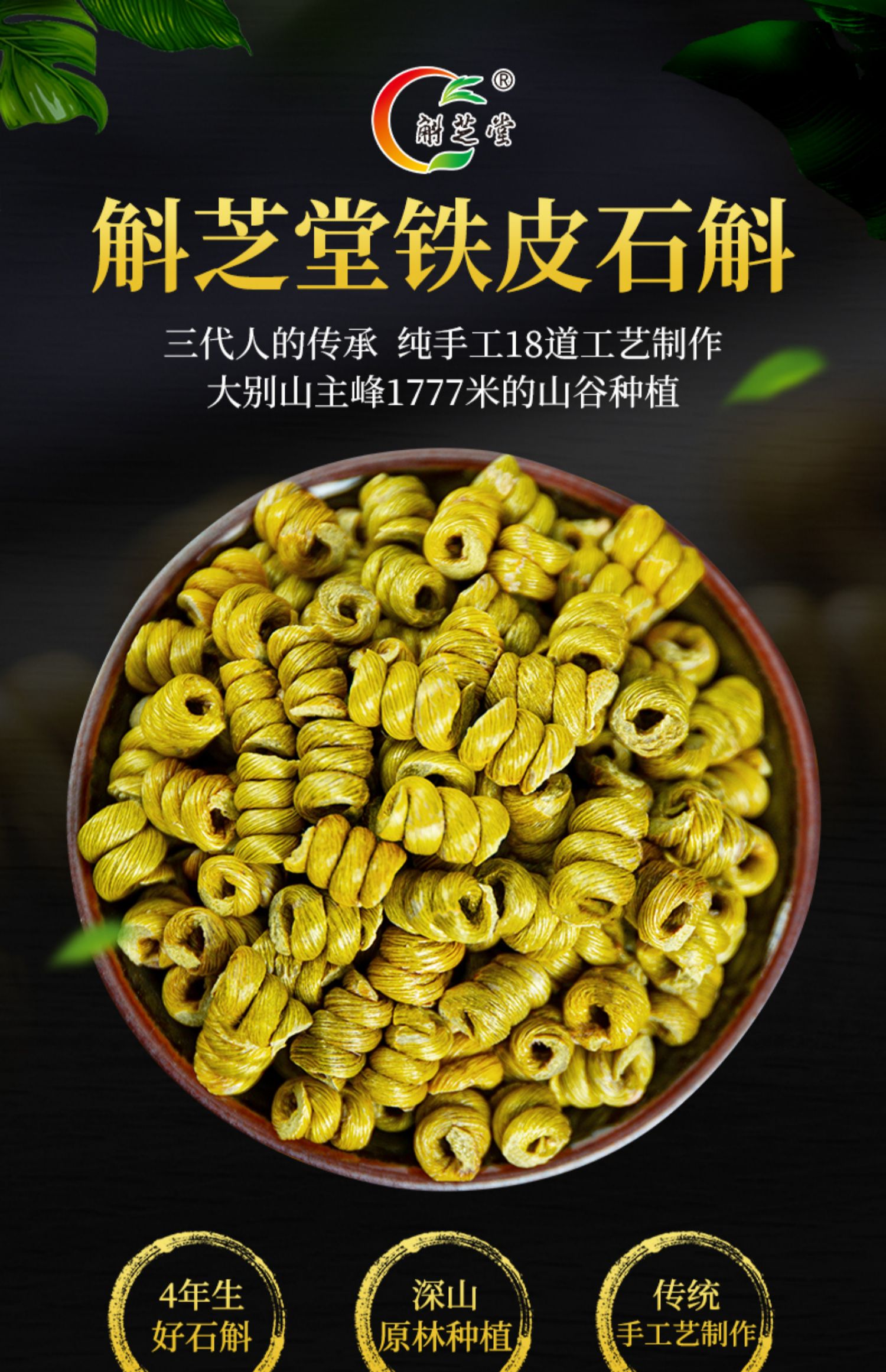 【赠运费险】曾在央视7套播出,三代人的传承,斛芝堂霍山铁皮石斛!4年生好石斛,纯手工18道工艺制作,质地饱满,胶质浓郁!有滋阴清热、降血脂的功效,还可以提高身体免疫力!