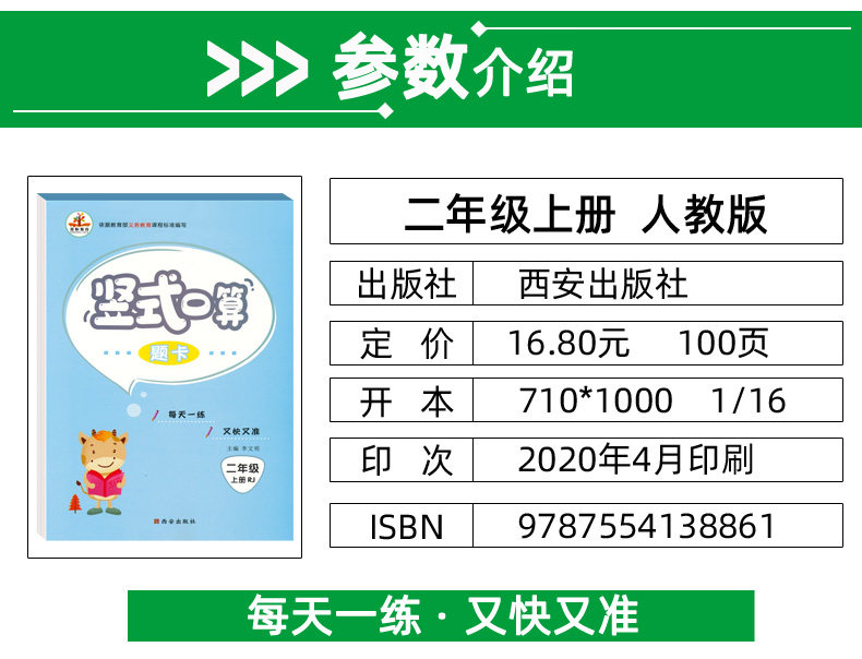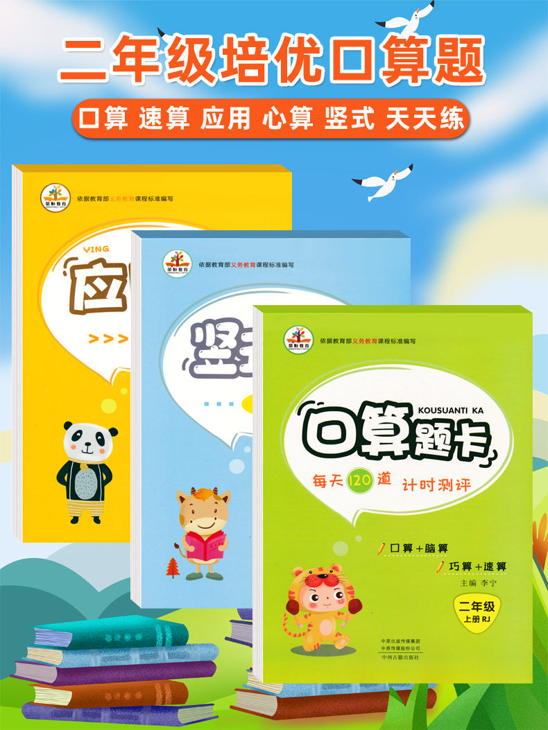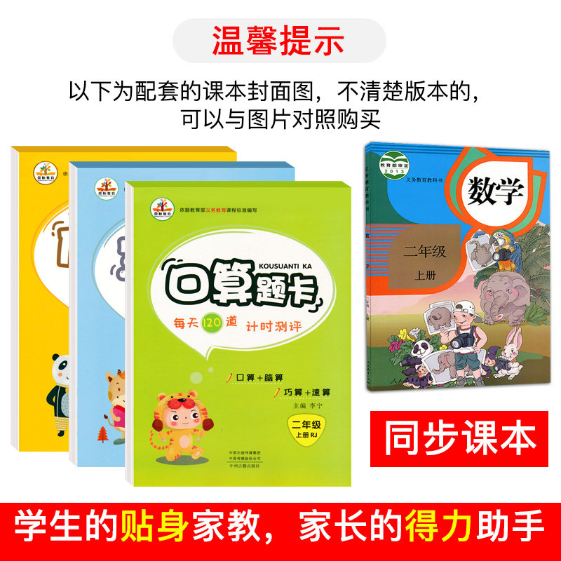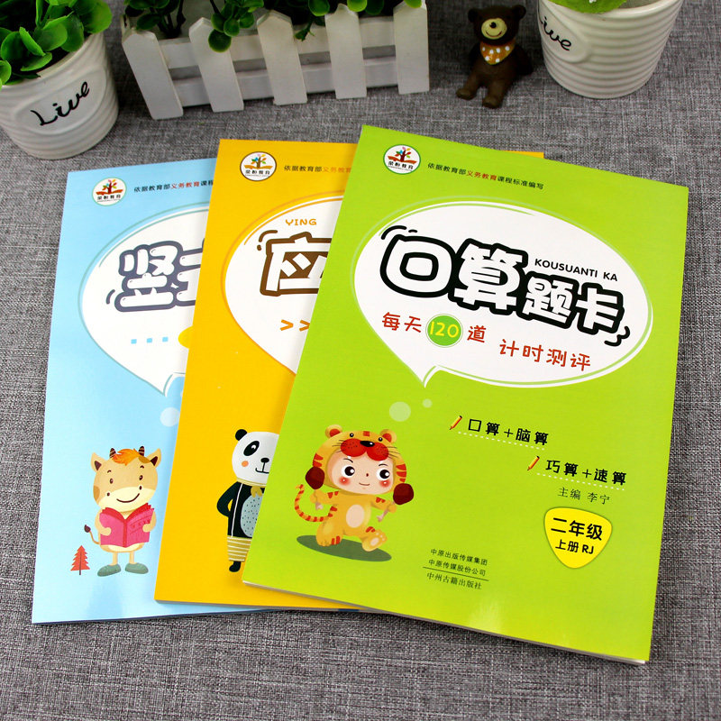 【全套3本装,赠运费险】2021口算题卡二年级上册,不要落下成绩!~含口算/速算/应用/心算/竖式题型,加减乘除多种趣味情景应用,举一反三,每天10分钟,学好数学不再难~