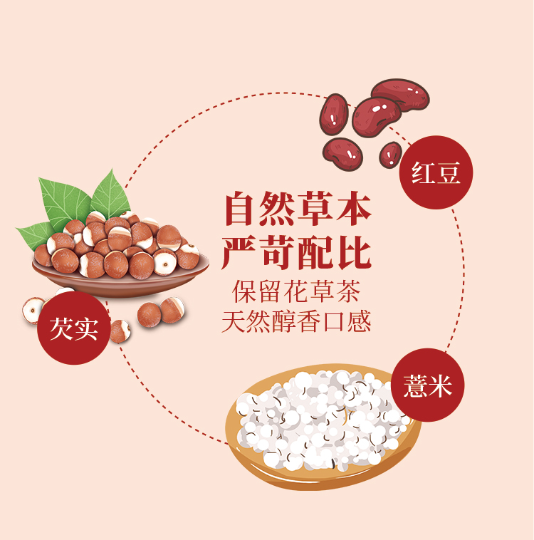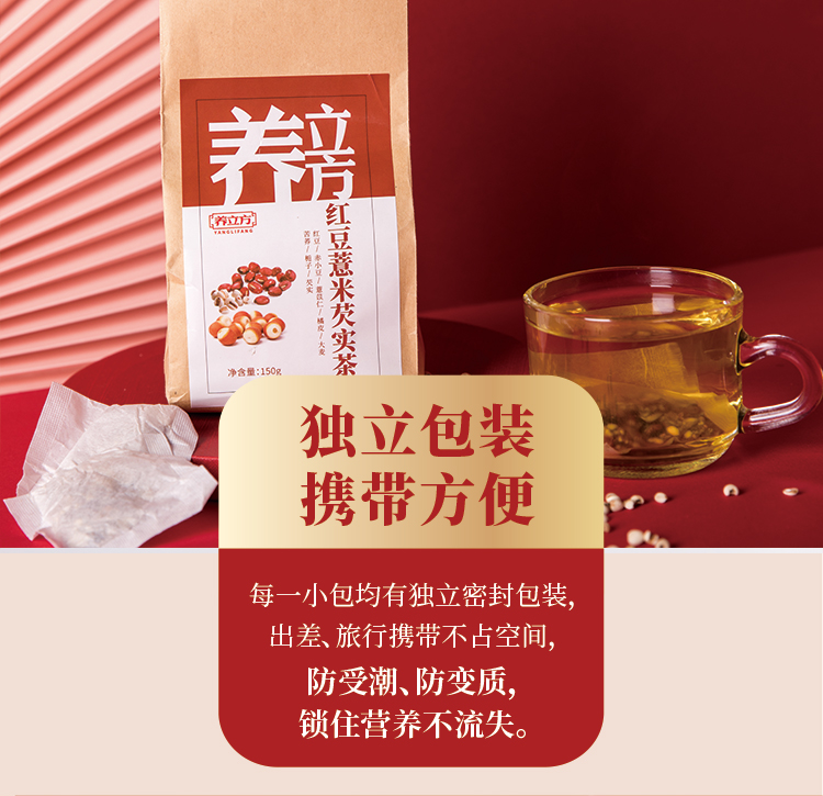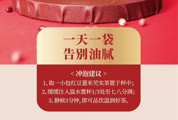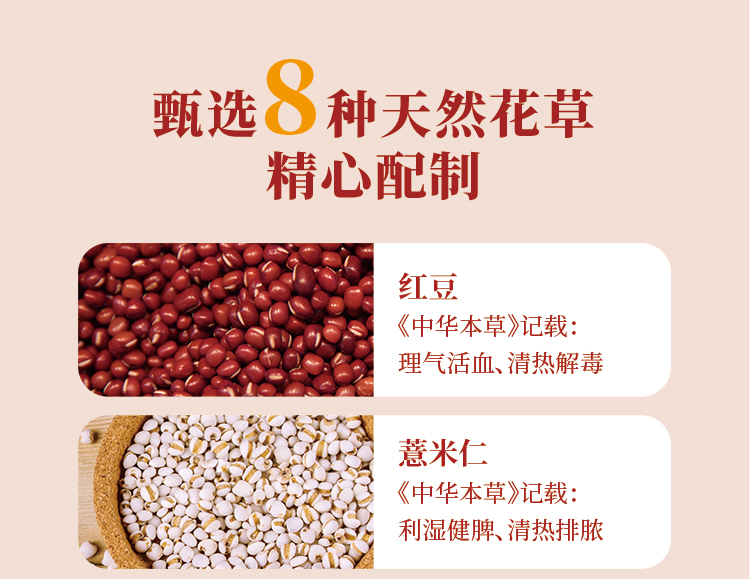 红豆薏米芡实茶,甄选8种自然草本严苛配比,保留花草茶天然醇香口感,独立包装方便携带,每天一杯,健康新养生!