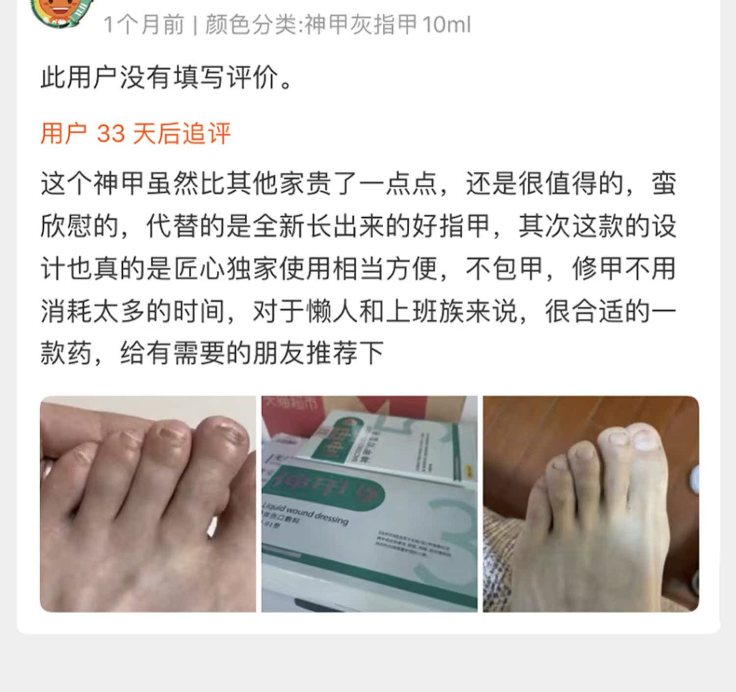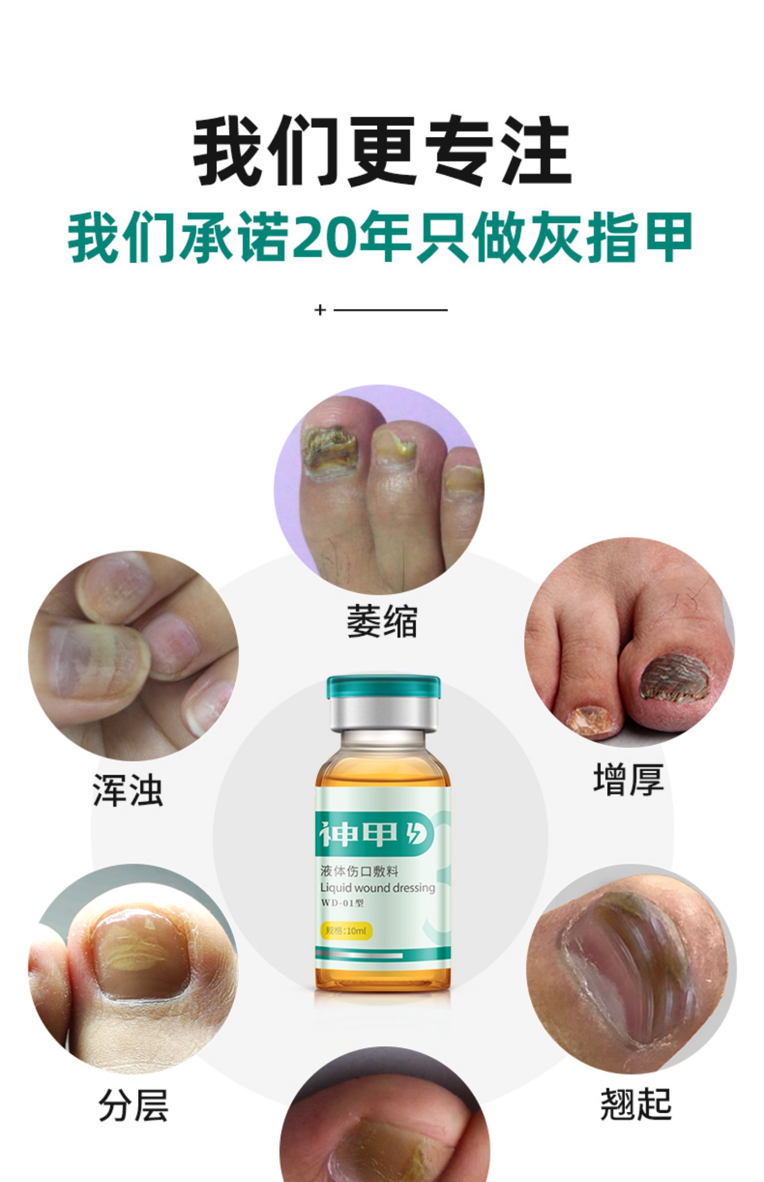 谁还没个灰指甲,早治早好!30天内免费试用!无效退款,收到货后请拍照你灰指甲的照片保存,按方法无效退款!不脱甲,无疼痛!