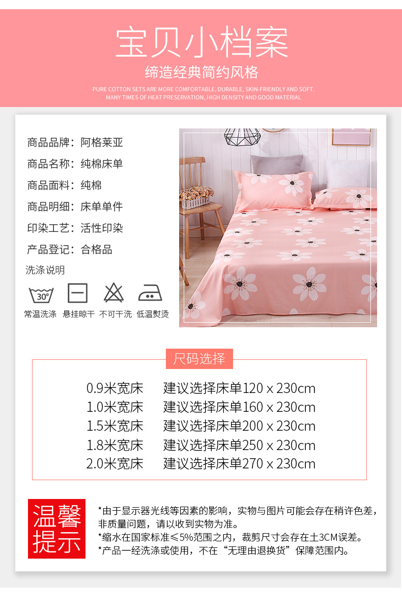 纯棉床单,不起球不掉色,吸湿透气,质地柔软,绿色天然,环保健康