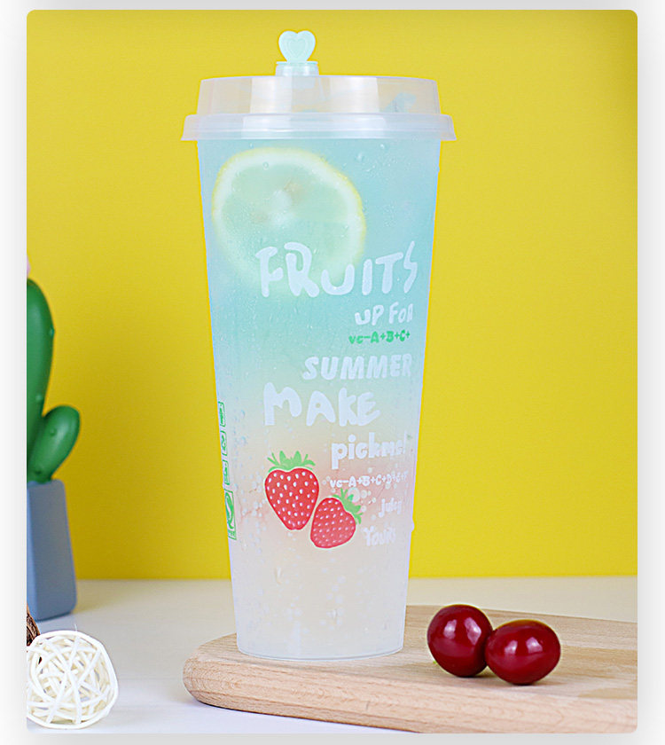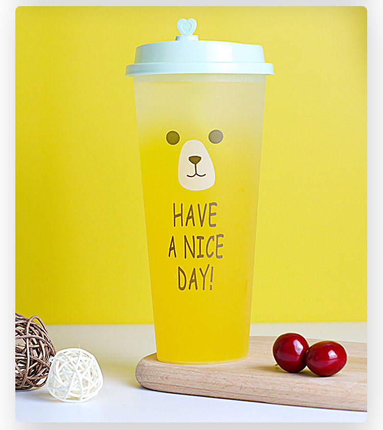 一次性加厚带盖奶茶杯磨砂注塑杯