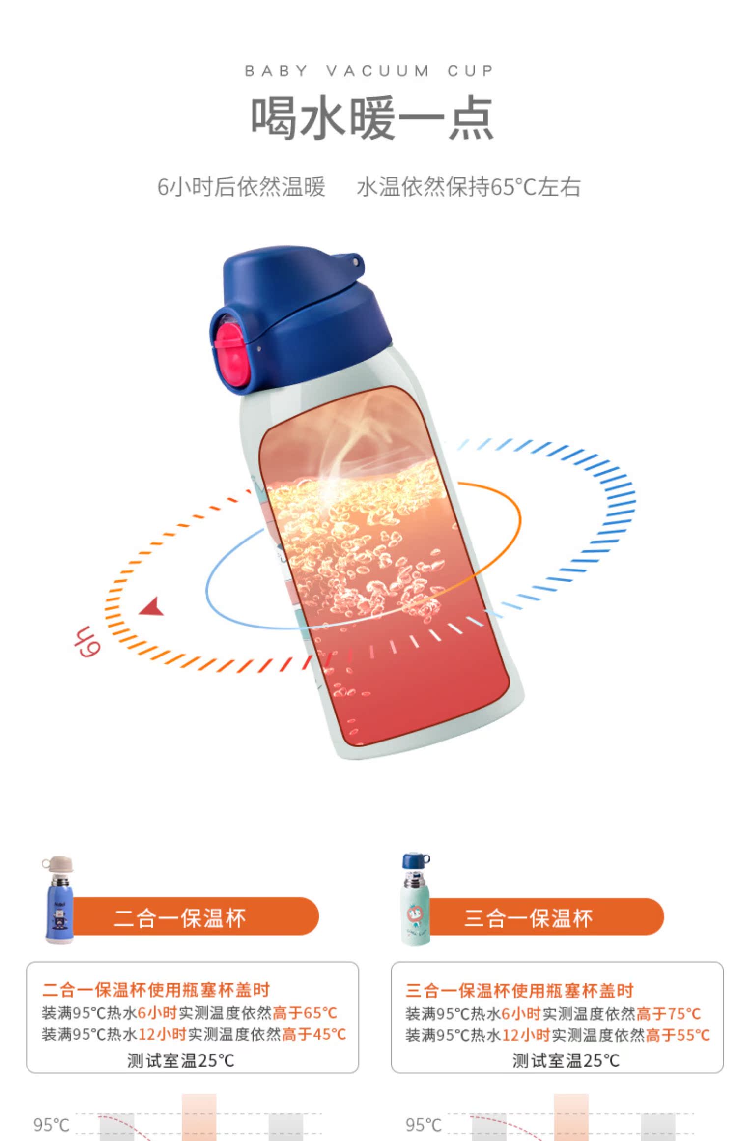 喜凯儿童保温杯大容量带吸管防摔