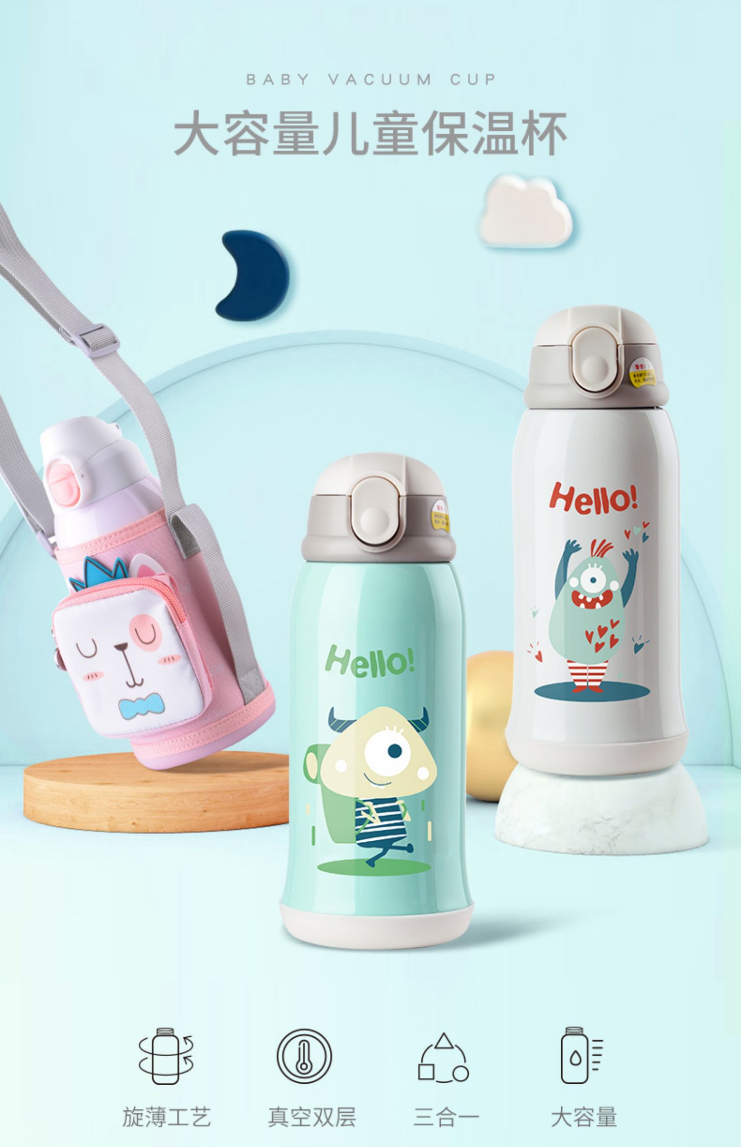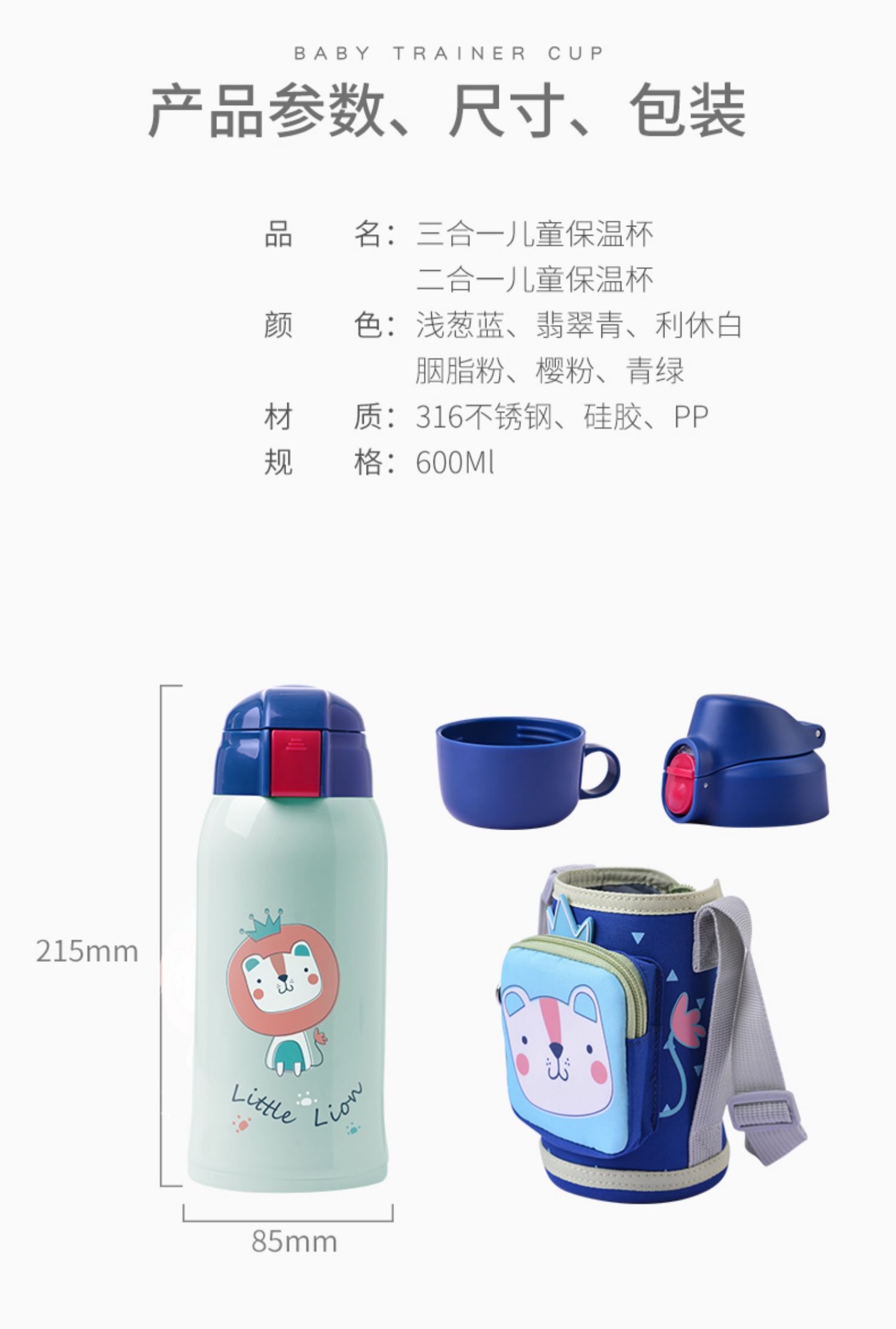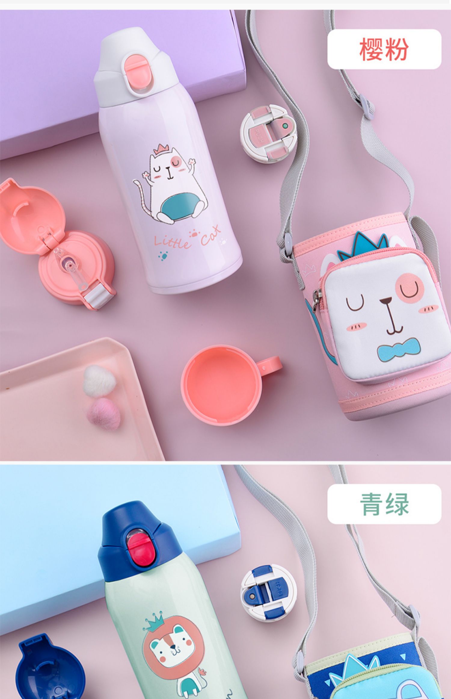天猫正品,喜凯316不锈钢儿童保温杯,背上就是zui靓的仔,多色可选,佩戴食品级硅胶吸管,双盖两用,更轻,更耐腐蚀,不含BPA,24小时持续保温,品质好!杯袋拉链小袋子设计【赠运费险】