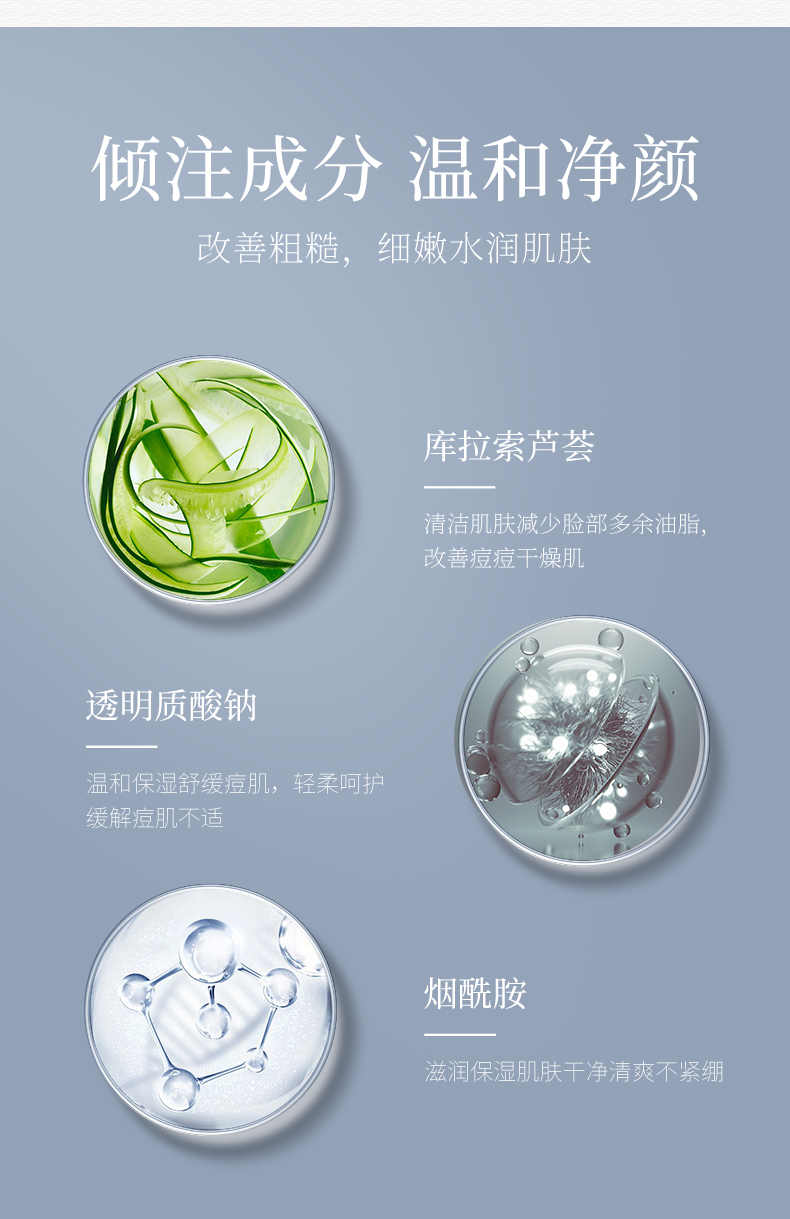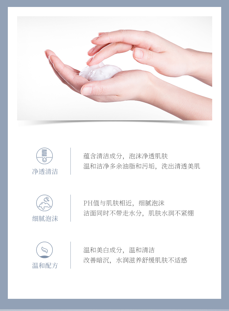 【直接拍3件!第2、3件0元!】甄选全球进口好原料,含蚕丝氨基酸类、寡肽-1、烟酰胺等原料,氨基酸起泡,温和不刺激,肌肤“0”负担,双效美白祛斑祛痘,改善肌肤问题,使肌肤变得更透明有光泽~~