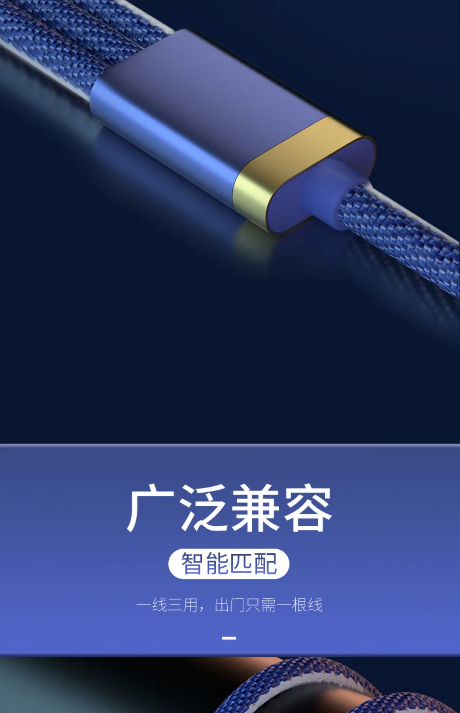 双引擎闪充,广泛兼容,安全快充不伤机,高密度铝合金接头,加粗线芯大电流传输,稳固PC外壳,防磨损,又耐用,耐折不易断,抗氧化,不生锈,不烫手,安全快充,一线在手天下我有!