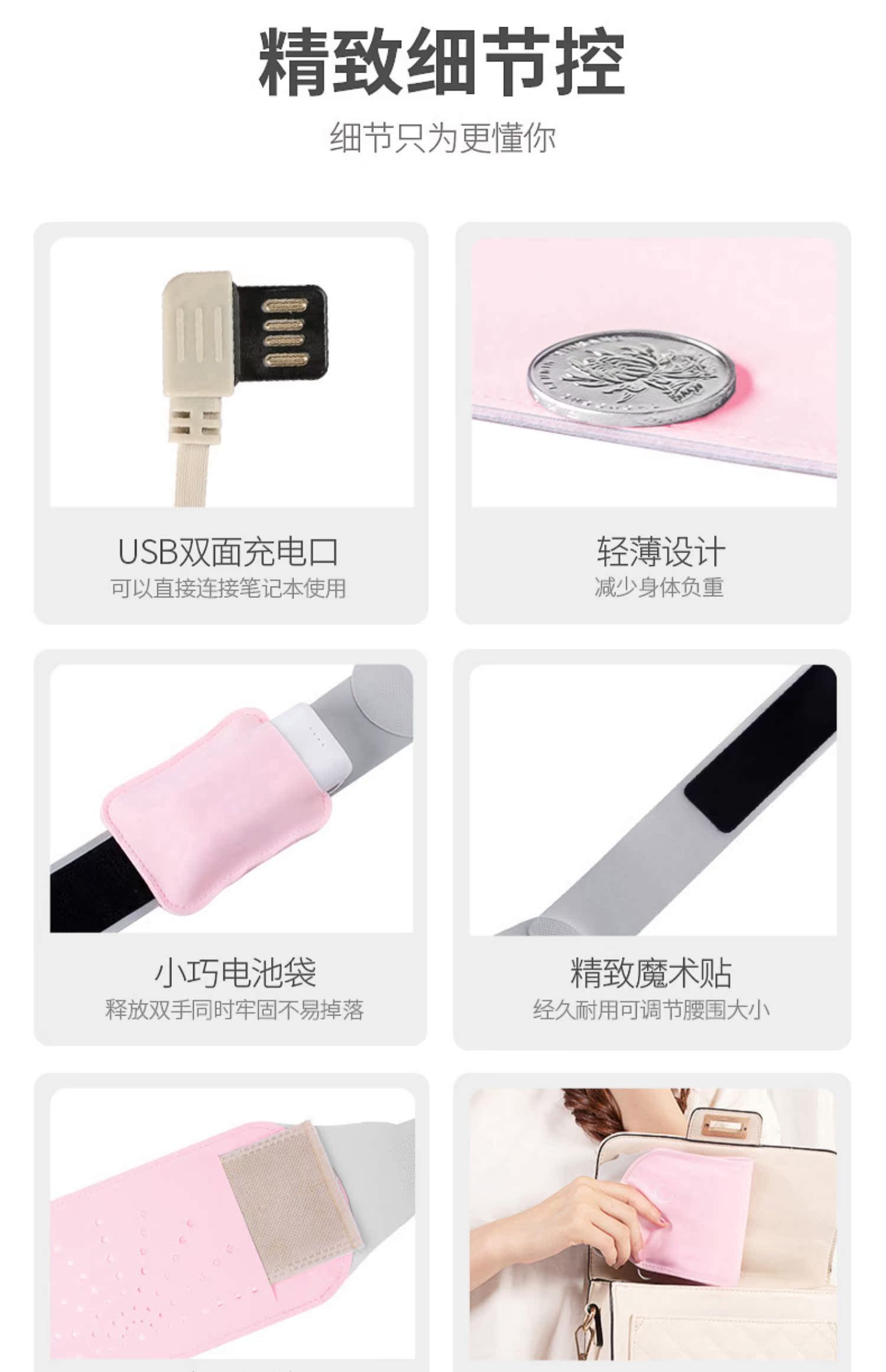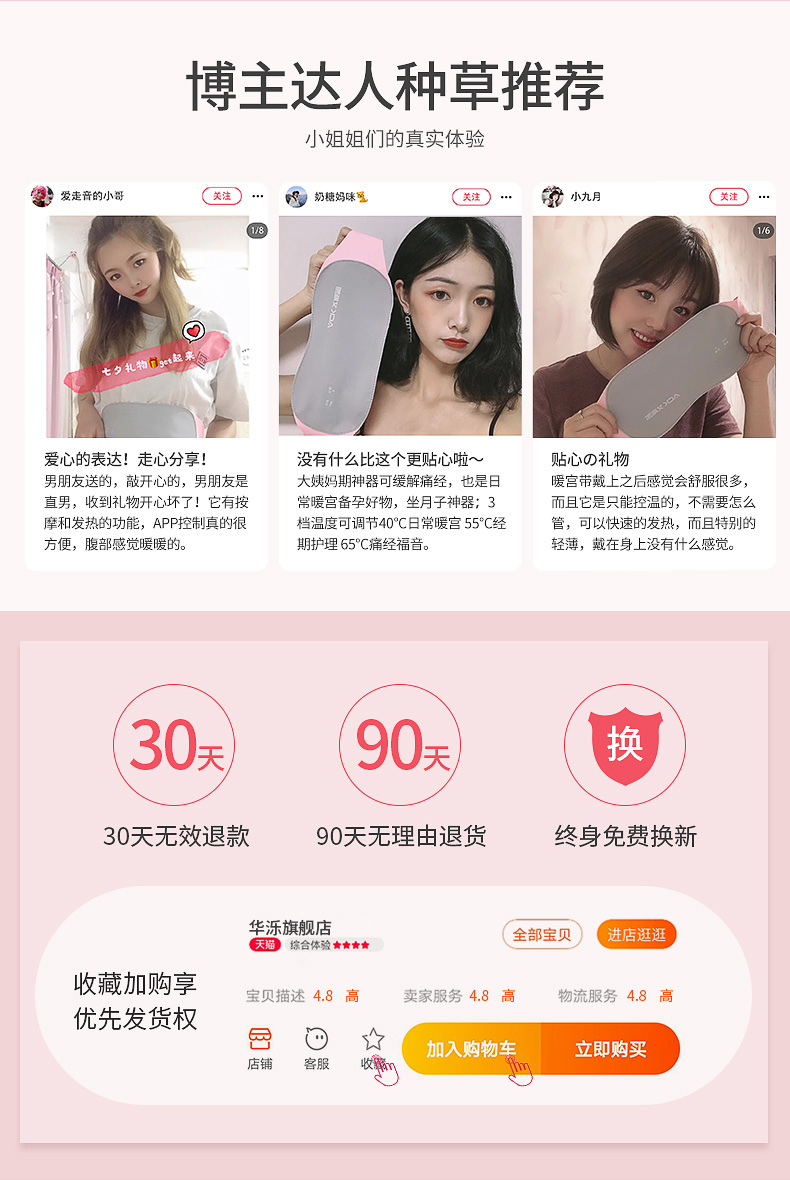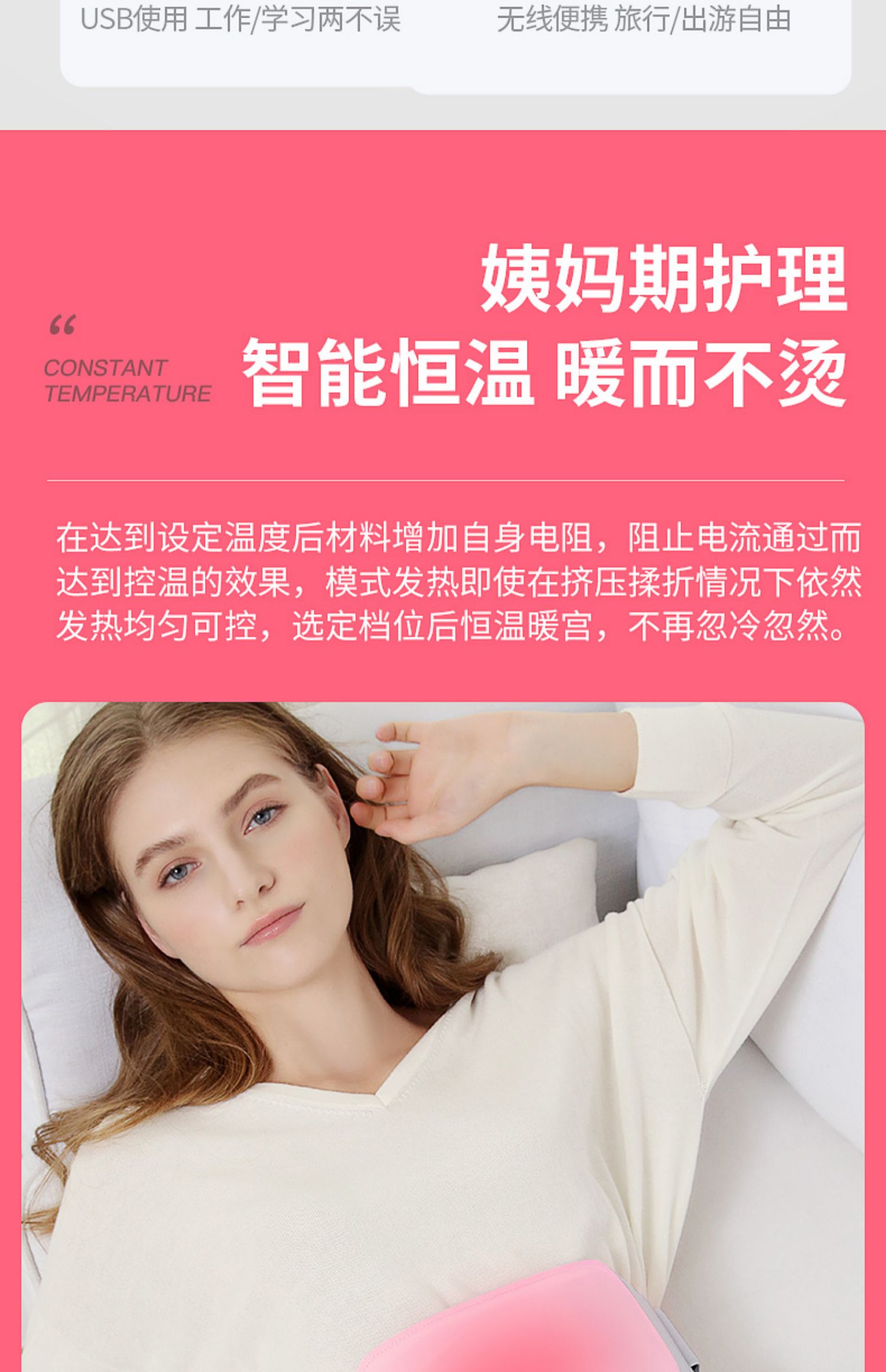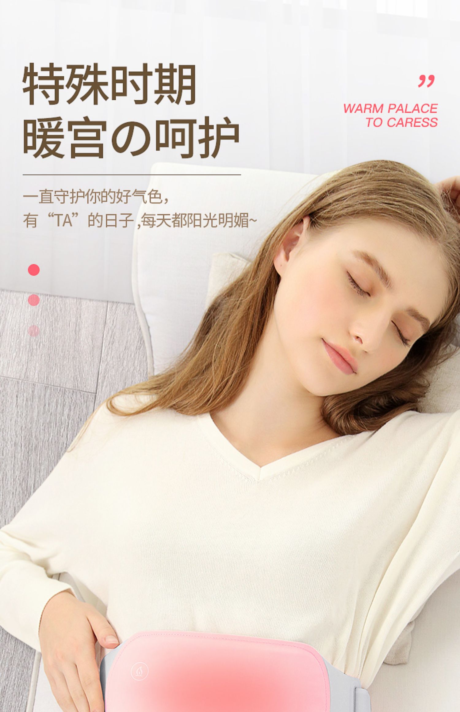 轻柔如云,薄如禅翼,隐形贴身,暖宫暖身,缓解经期疼痛,小腹坠胀,腰部酸痛!充电便携,随时随地可用,特殊时期给你温暖的呵护!【赠运费险】