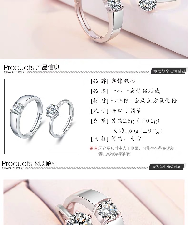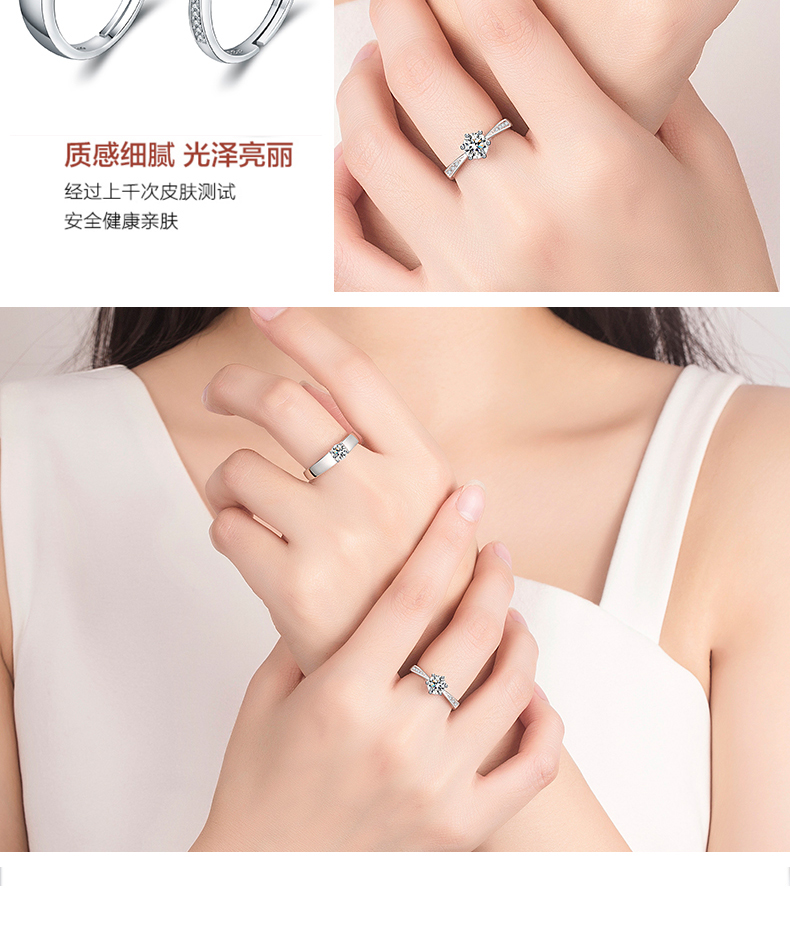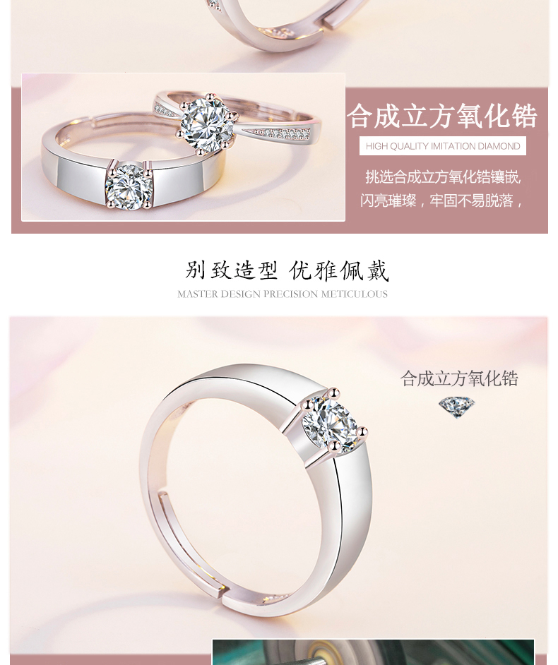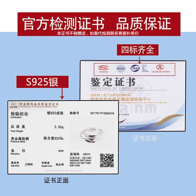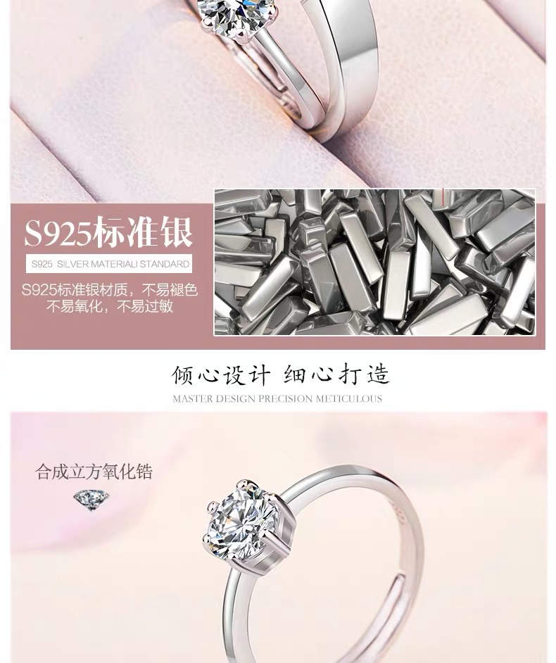 925纯银防过敏防褪色,电镀白金工艺,优质锆石,简约大方,活口可调节大小、精美包装礼盒!