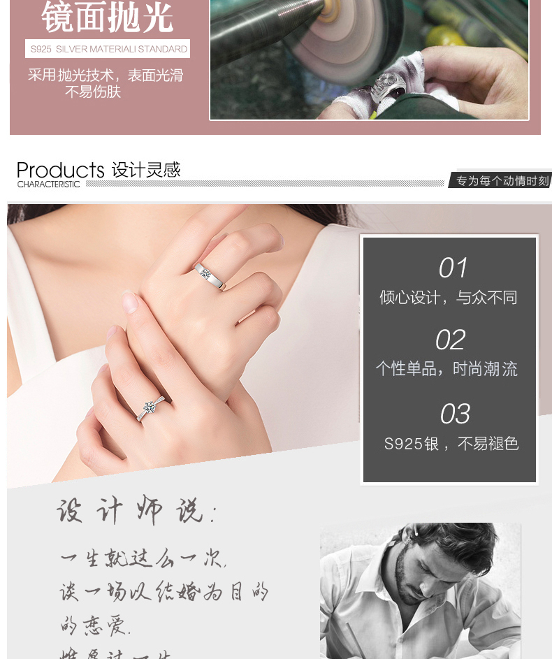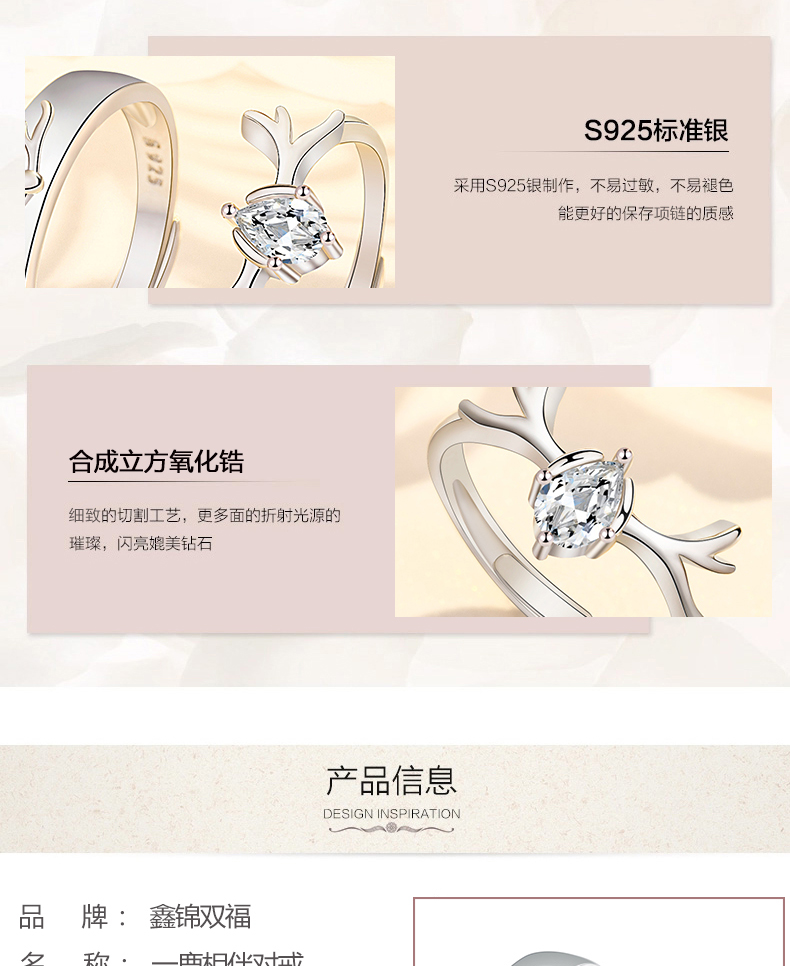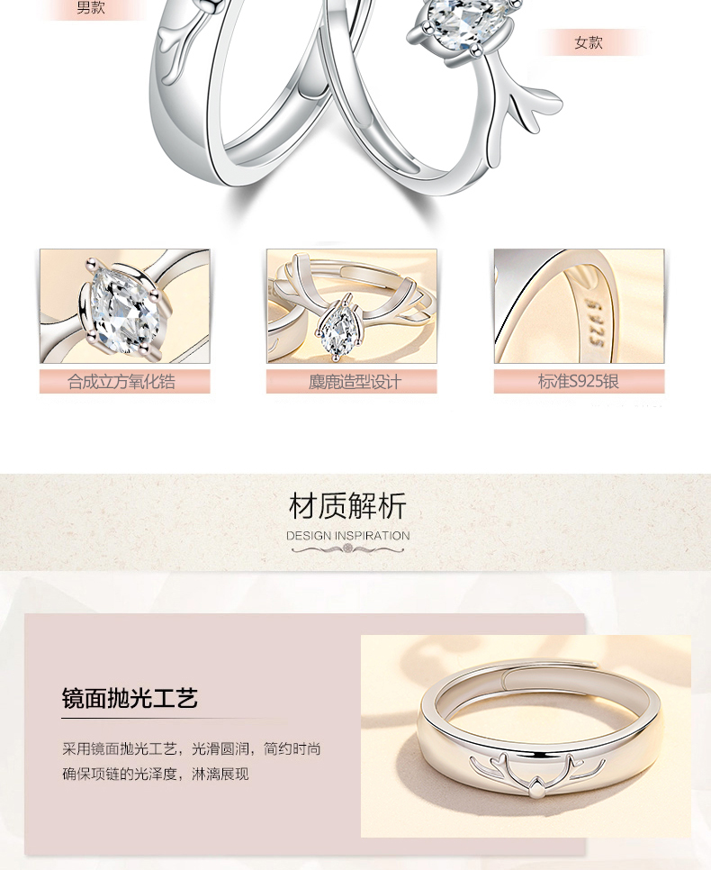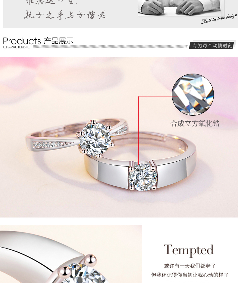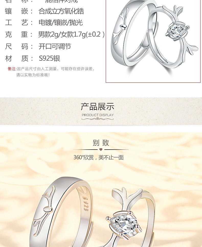 925纯银防过敏防褪色,电镀白金工艺,优质锆石,简约大方,活口可调节大小、精美包装礼盒!