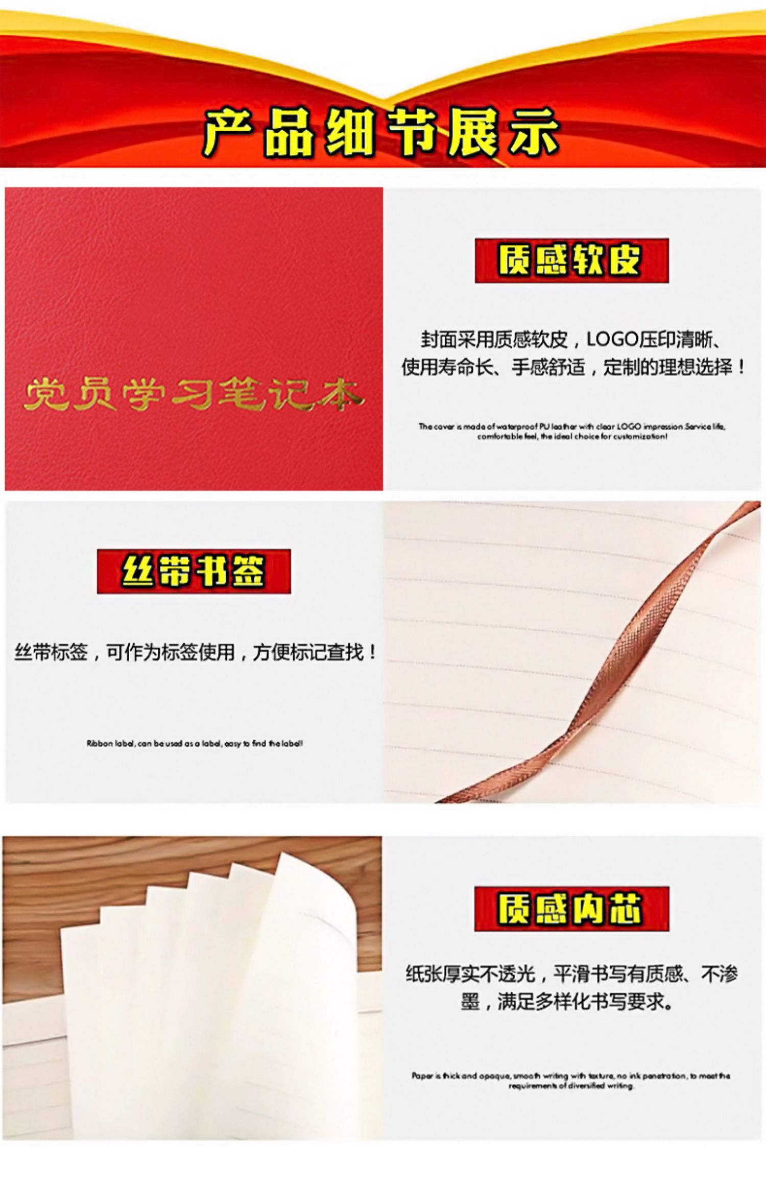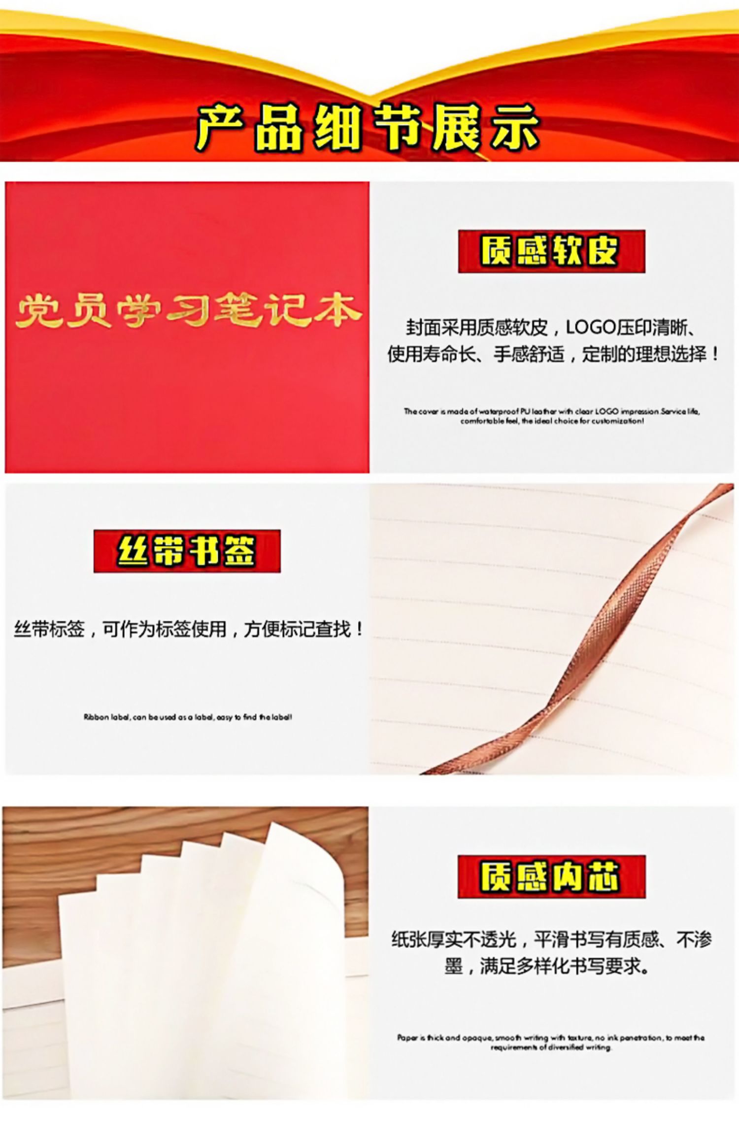 专业的新版党员学习记录本,日常会议记录必备,纸张书写流畅,纸张质感超好。4.9分好评,一切尽在不言中!