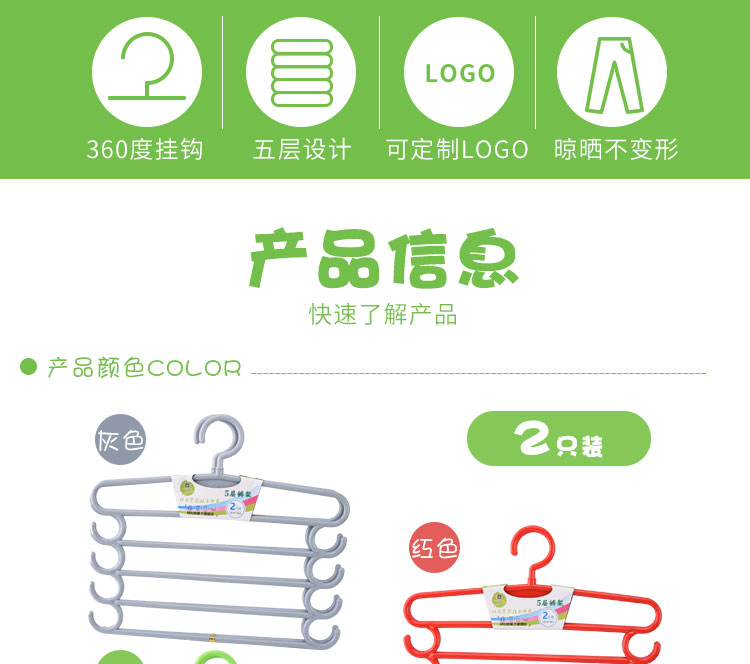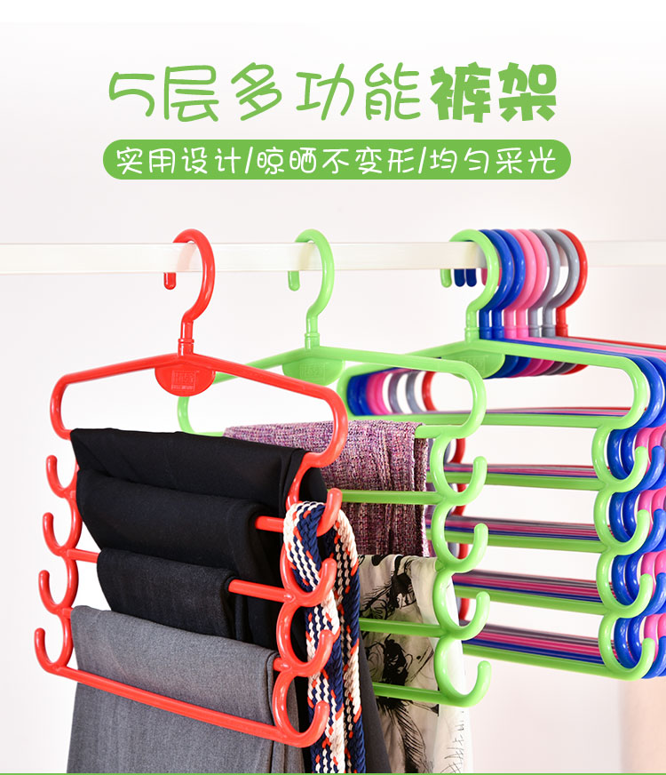 【千人验货】2个装,到手价一个仅需3.8元,5层多功能裤架,使用设计,晾晒不变形,均匀采光,以一顶五,整理收纳,凹槽设计,可360度旋转,可定制logo,您的私人专属,环保PP材质,色泽亮丽,耐用持久