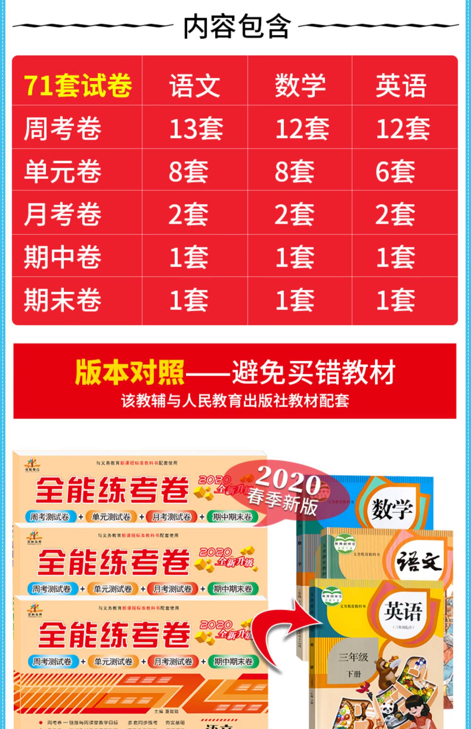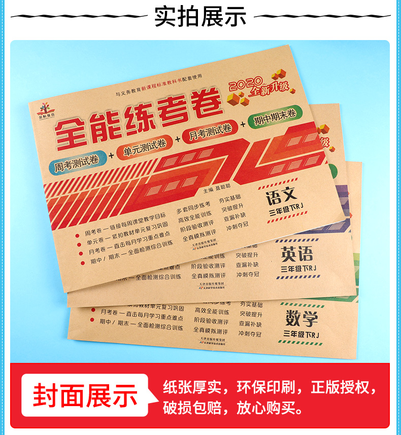 【语文+数学+英语】2019小学三年级下册试卷全套人教版3本,语文数学英语三本套装,百所名校特高级教师鼎力推荐,让你的孩子赢在起跑线上!