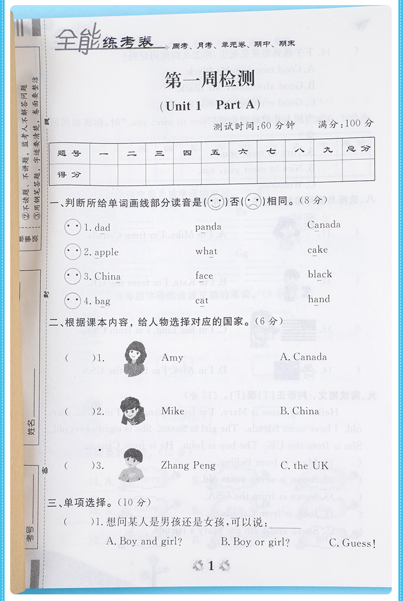 小学三年级下册试卷全套3册