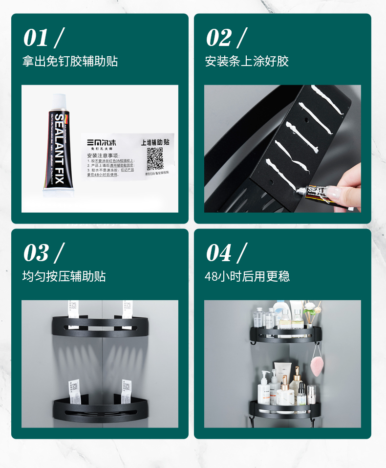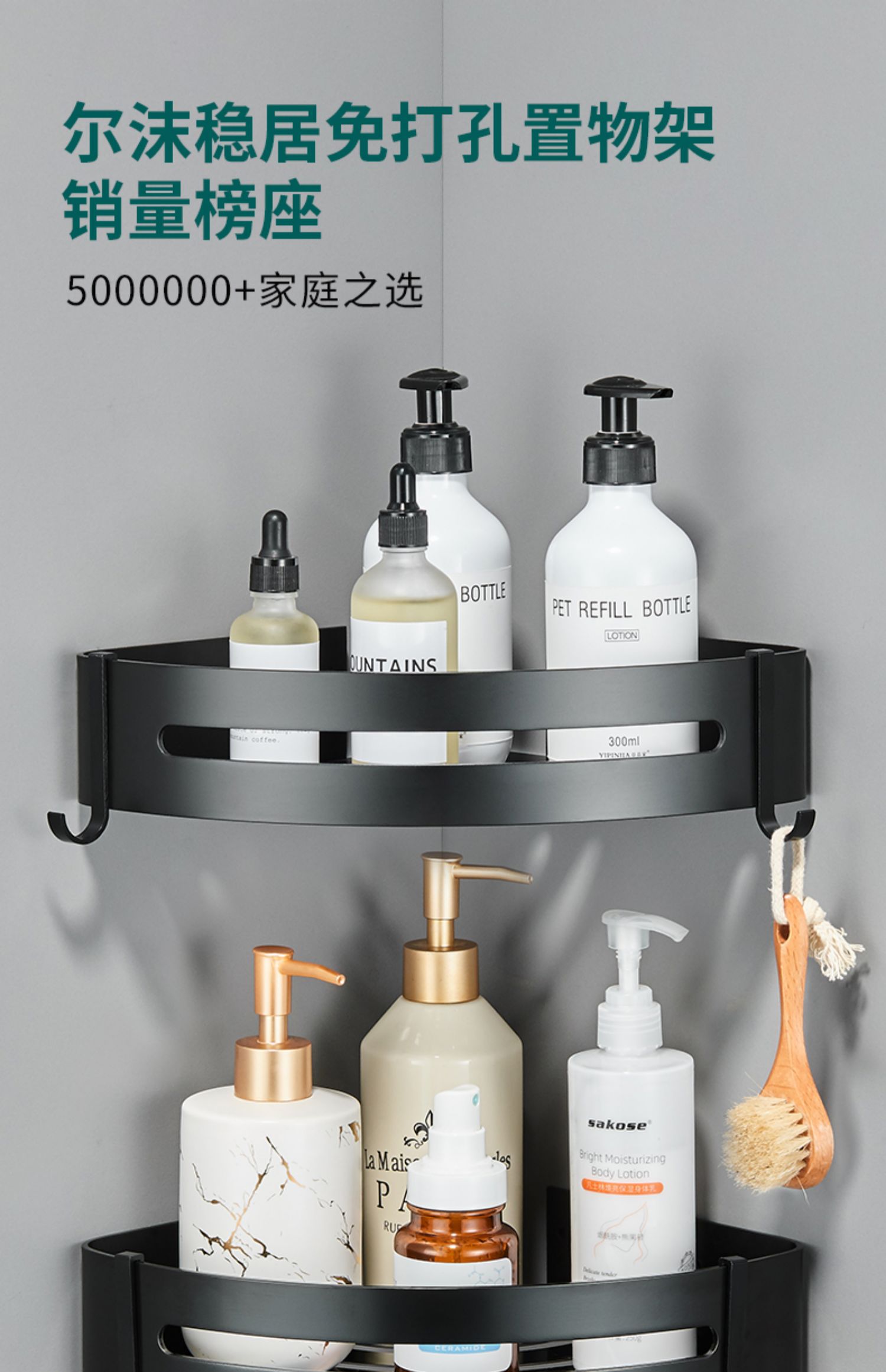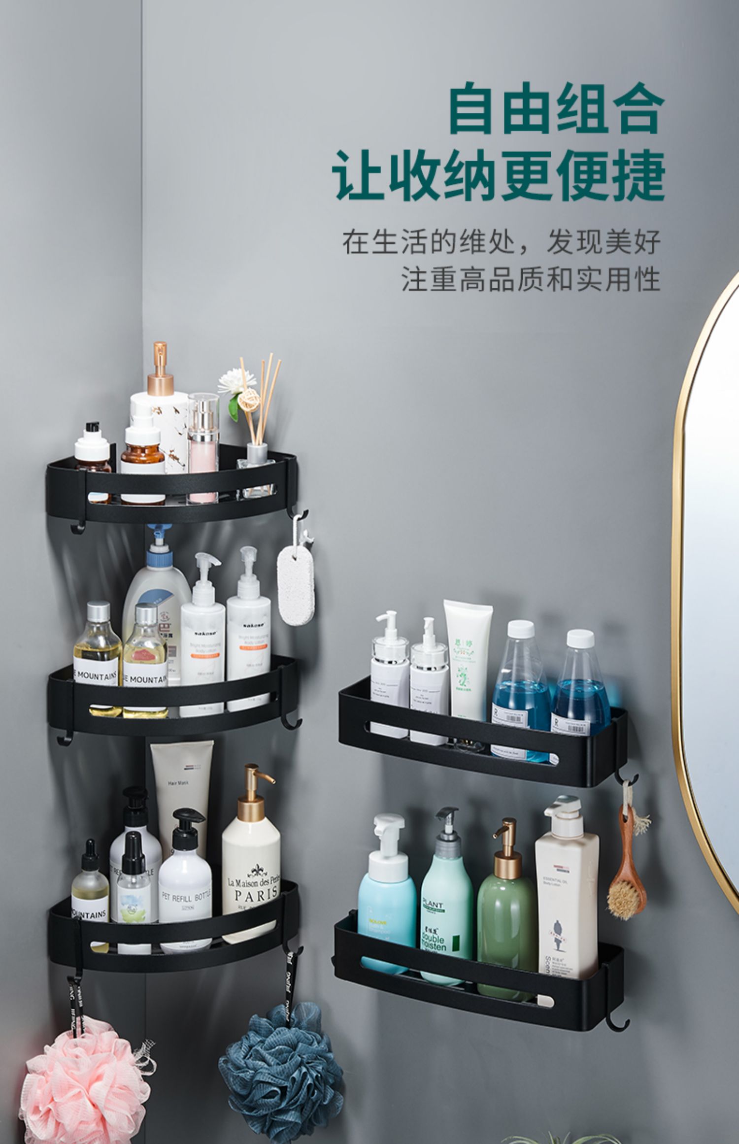 免打孔浴室拖鞋架,采用太空铝材质,坚固耐用,不易生锈,承重力强,拖鞋、毛巾等挂上去,不易脱落,免打孔强粘胶,安装特别简单!【赠运费险】
