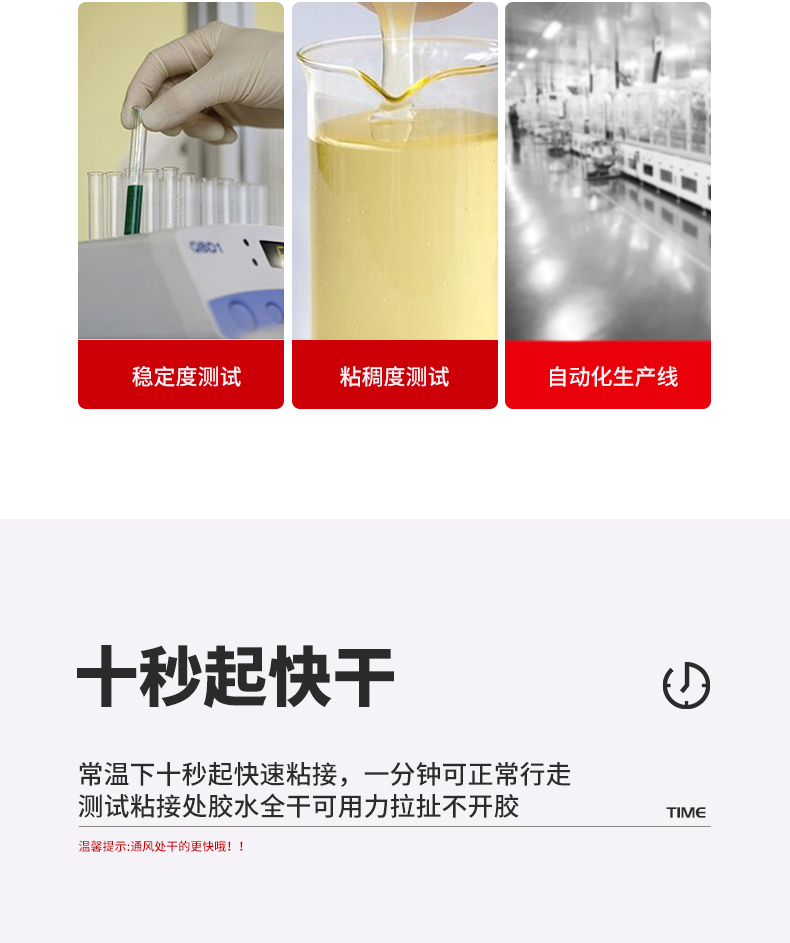 强力通用快干胶,健康环保适合家庭中多种材质粘接,操作简单,省时省力,环保品质,快速粘接。