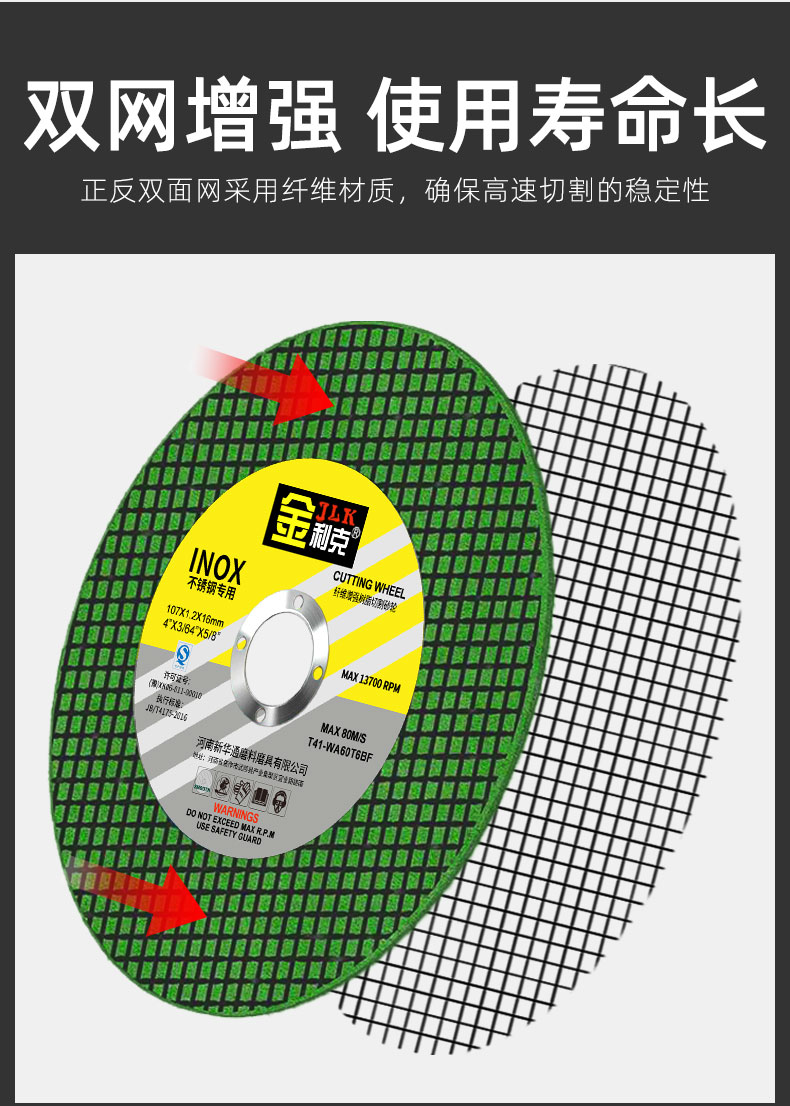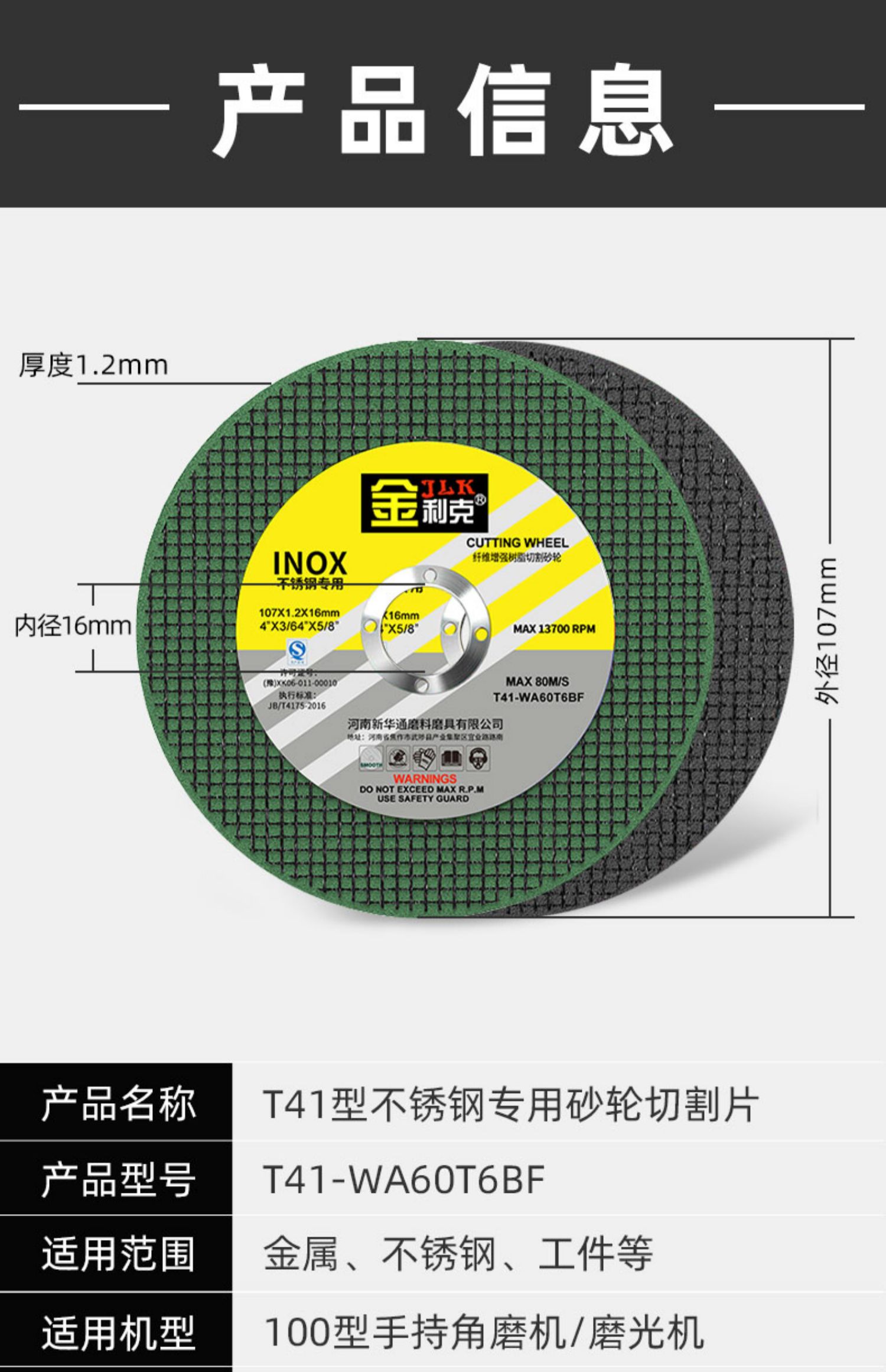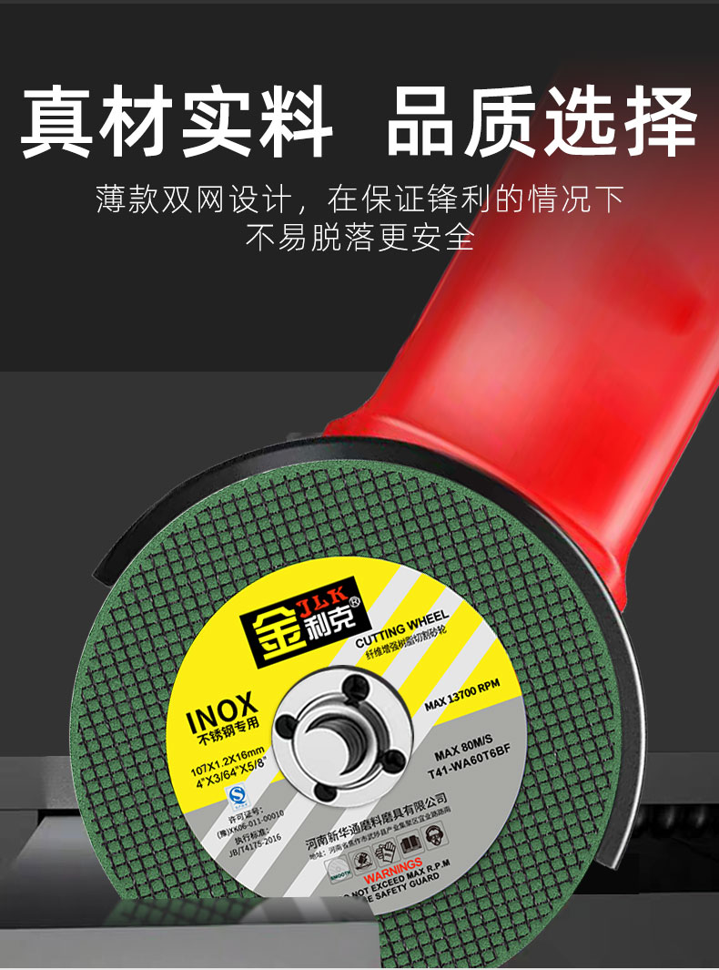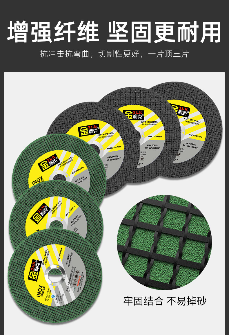 金利克切割片,工业级绿色双网3片装,适用100型角磨机,锋利耐磨,无毛刺,不崩边,不飞片,高效安全,用途广泛!