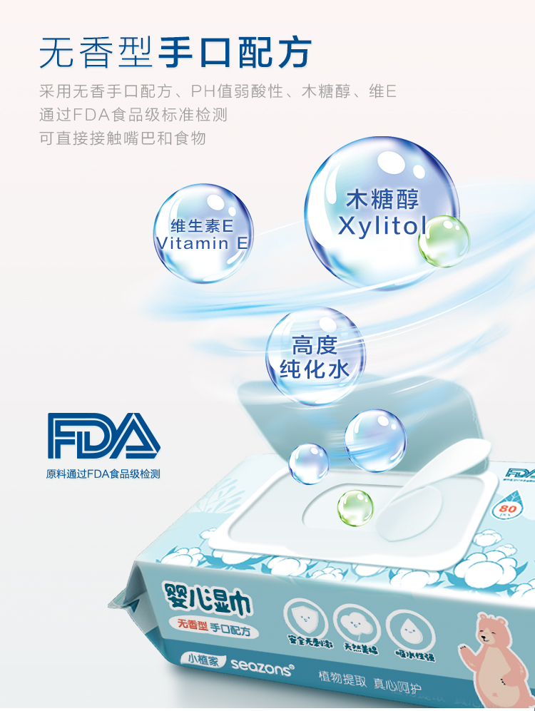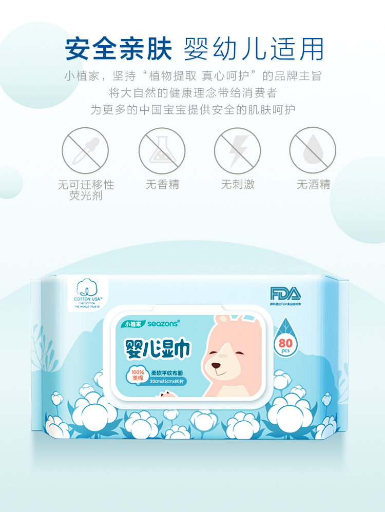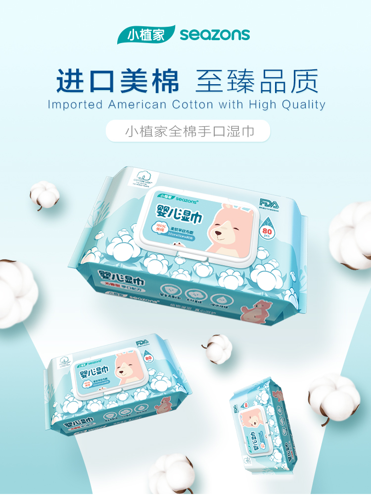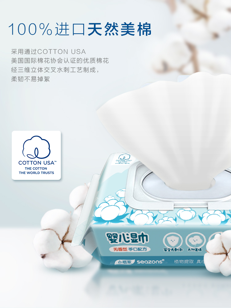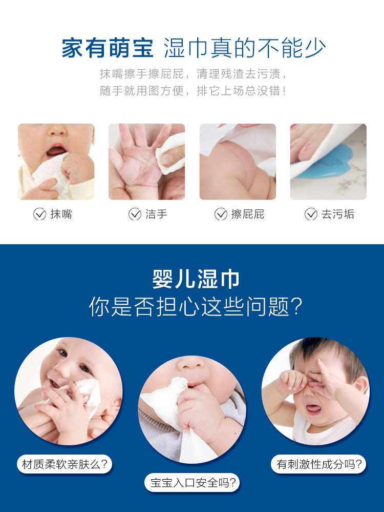 【卷后只需9.9】一直专注婴儿湿巾,植物萃取自然健康,天然温和顺柔洁肤,添加保湿因子,RO纯水,无添加,无酒精,无香料,无荧光剂,我们要给宝宝最温柔的呵护~