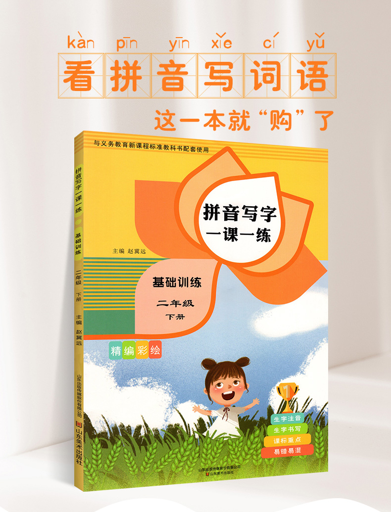 【老师推荐必备】看拼音写词语二年级下册,一课一练内容丰富多样!图文结合,字体印刷清晰可见,保护眼睛,便于书写!同步课堂训练,巩固知识,是小学生练字识字必备书籍!
