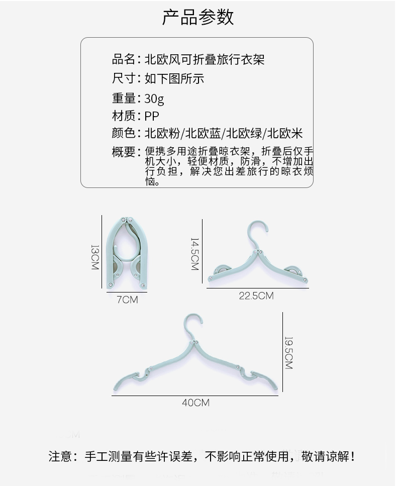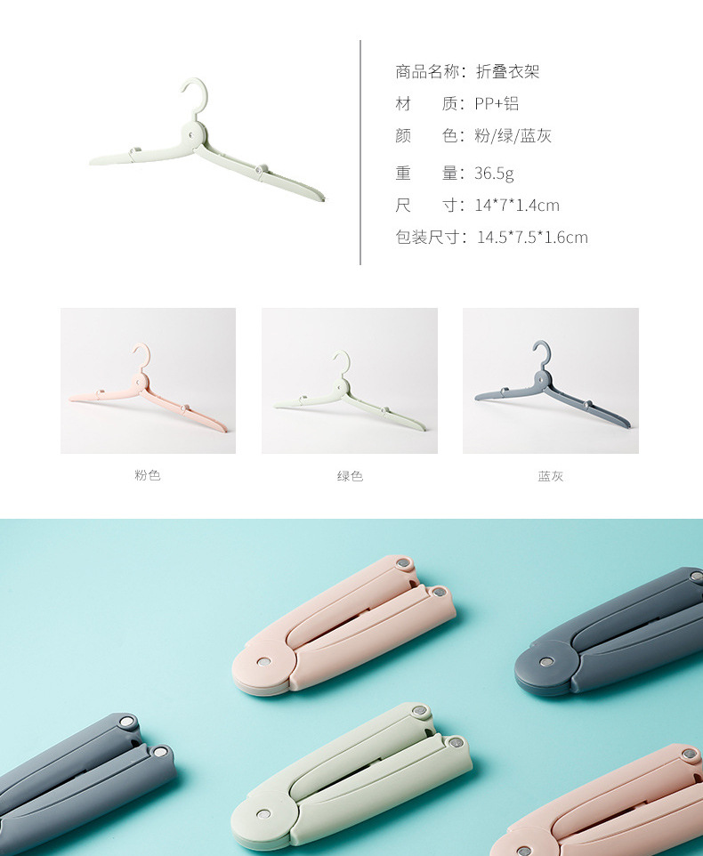 【防风防滑】清新配色,简约美观!防风挂钩设计,3种折叠设计,轻松折叠不占空间,大小衣服都适用,家居旅行好伴侣!