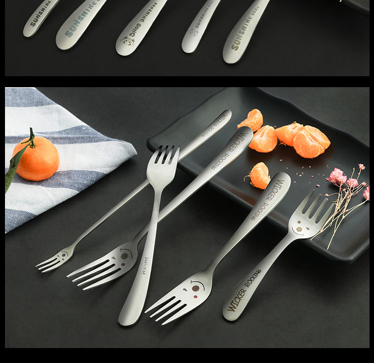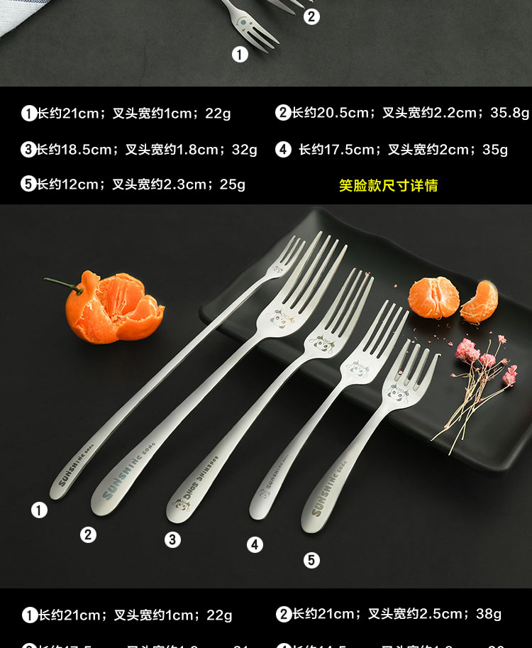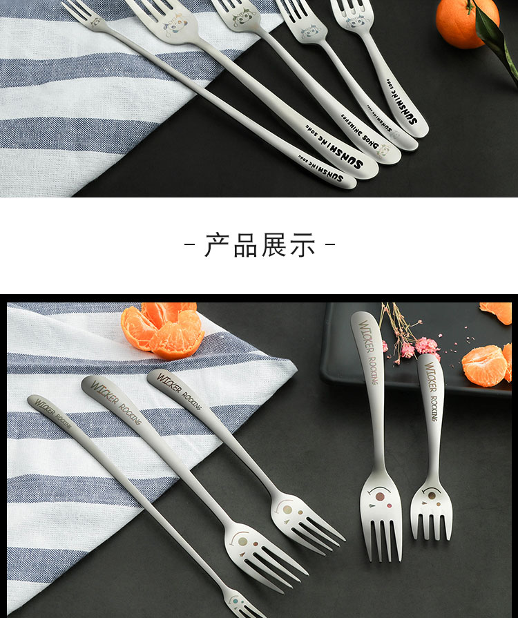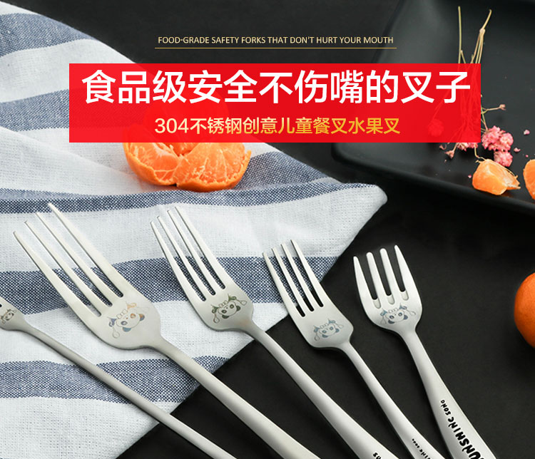 儿童叉子水果叉304不锈钢甜品叉家用创意可爱宝宝安全餐叉套装,食品级不锈钢,镜面抛光工艺,便携收纳,耐高温不变形,安全卫生环保,不藏垢易清洗,告别筷子发霉掉漆问题。