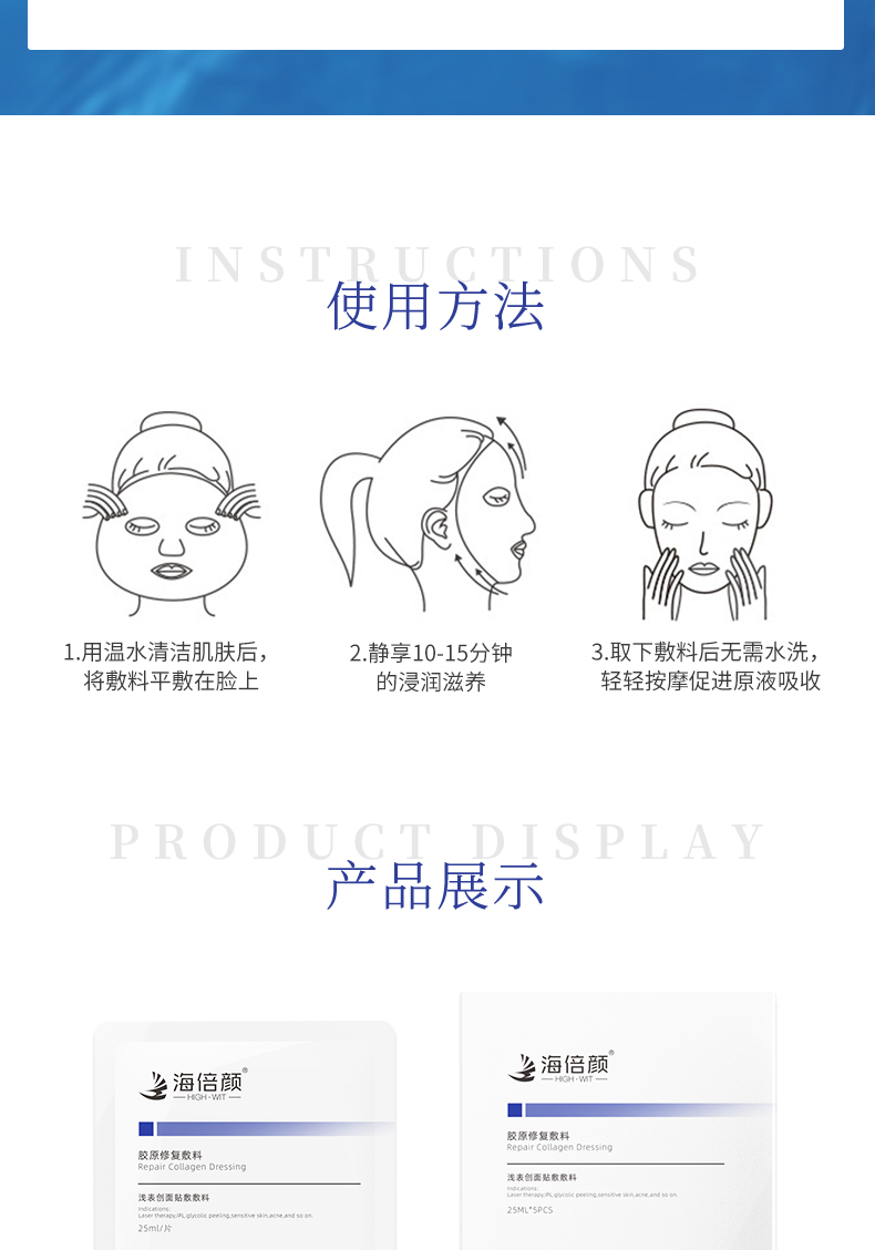 海倍颜,医美,医用修复补水面膜,胶原修复,敷料祛痘敏感肌冷敷贴,锁水控油,无菌生产,无添加,敏感肌肤克星。