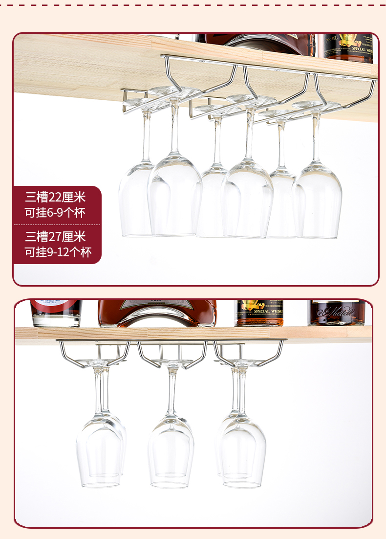 倒挂家用红酒杯架,稳固承重,不易掉落,承重力大10公斤,方便实用,有酒杯没杯架怎么行,还可节省空间,美观得体,多种规格可选,居家必备!