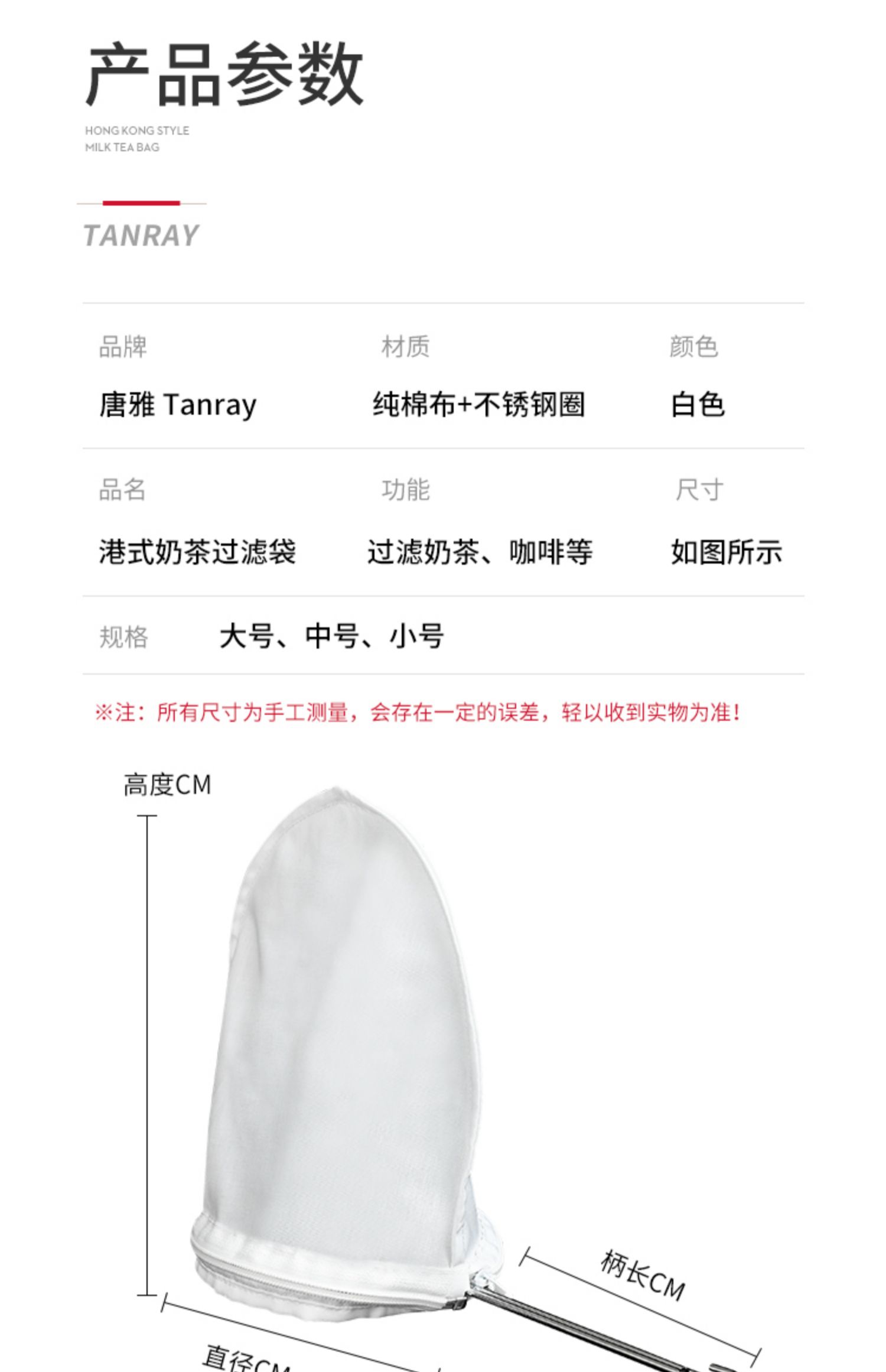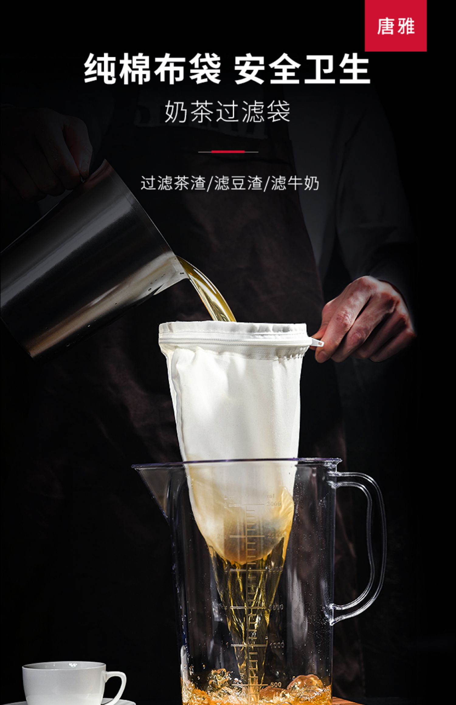 【唐雅】奶茶过滤袋过滤网滤茶袋,高密度过滤网,卫生纯棉材质,纯棉布袋安全卫生。滤茶/滤豆渣/滤牛奶