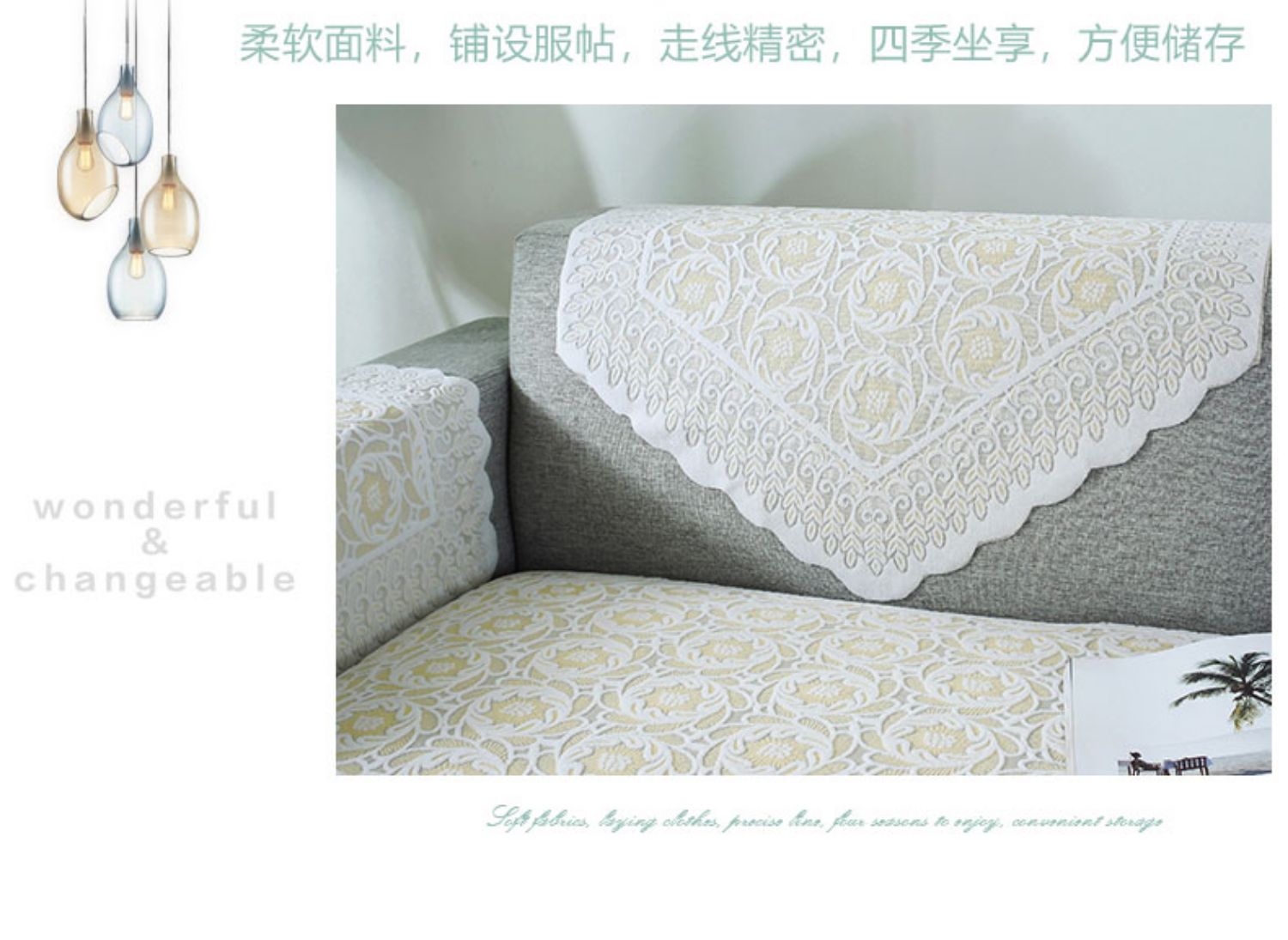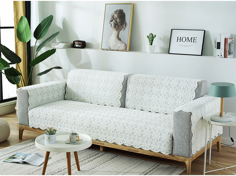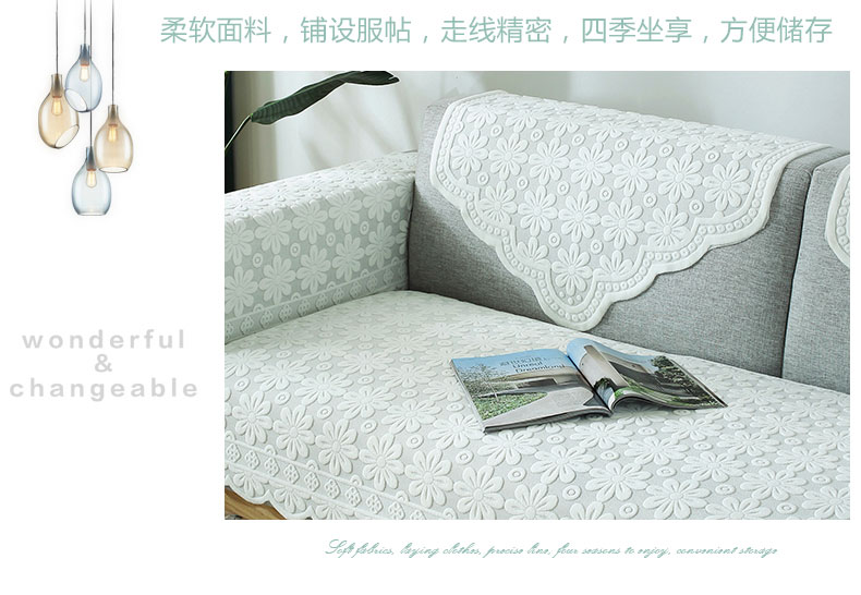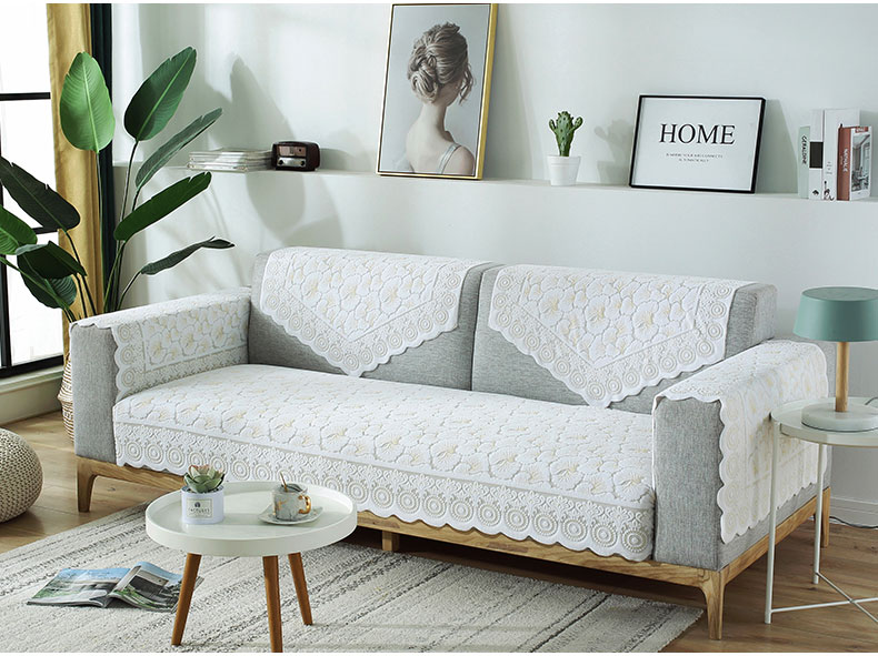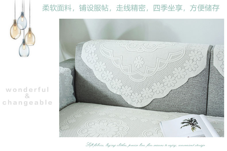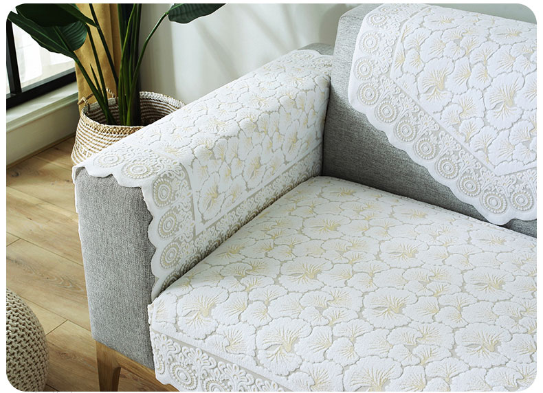 现代简约布艺防滑蕾丝沙发垫,四季通用,加厚蕾丝,立体浮雕,简约大方,多种用途,多色可选,耐脏耐洗,不起球,不褪色!