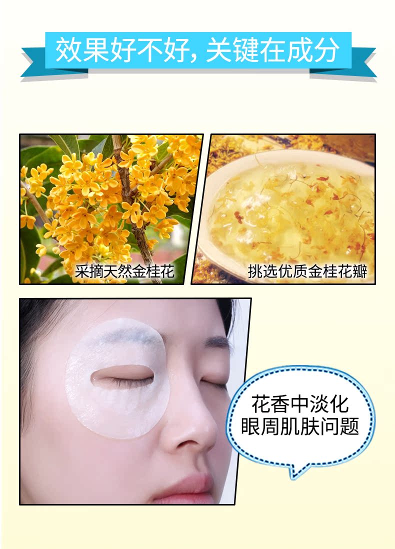 【第二件10元,第三件0元】眼睛能出卖一个人的年龄,眼周肌肤不可忽视!温和金桂花眼膜,有效解决眼部肌肤问题,自然般呵护眼周肌肤,补水保湿,滋润淡化眼纹,改善黑眼圈,紧致提拉,帮你打造迷人眼眸~