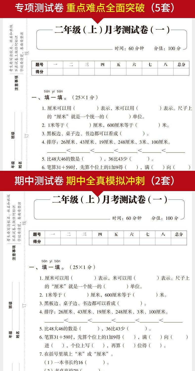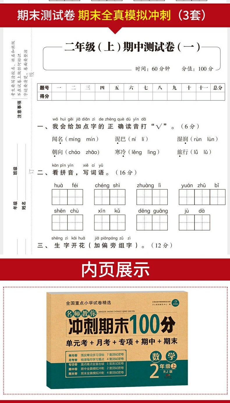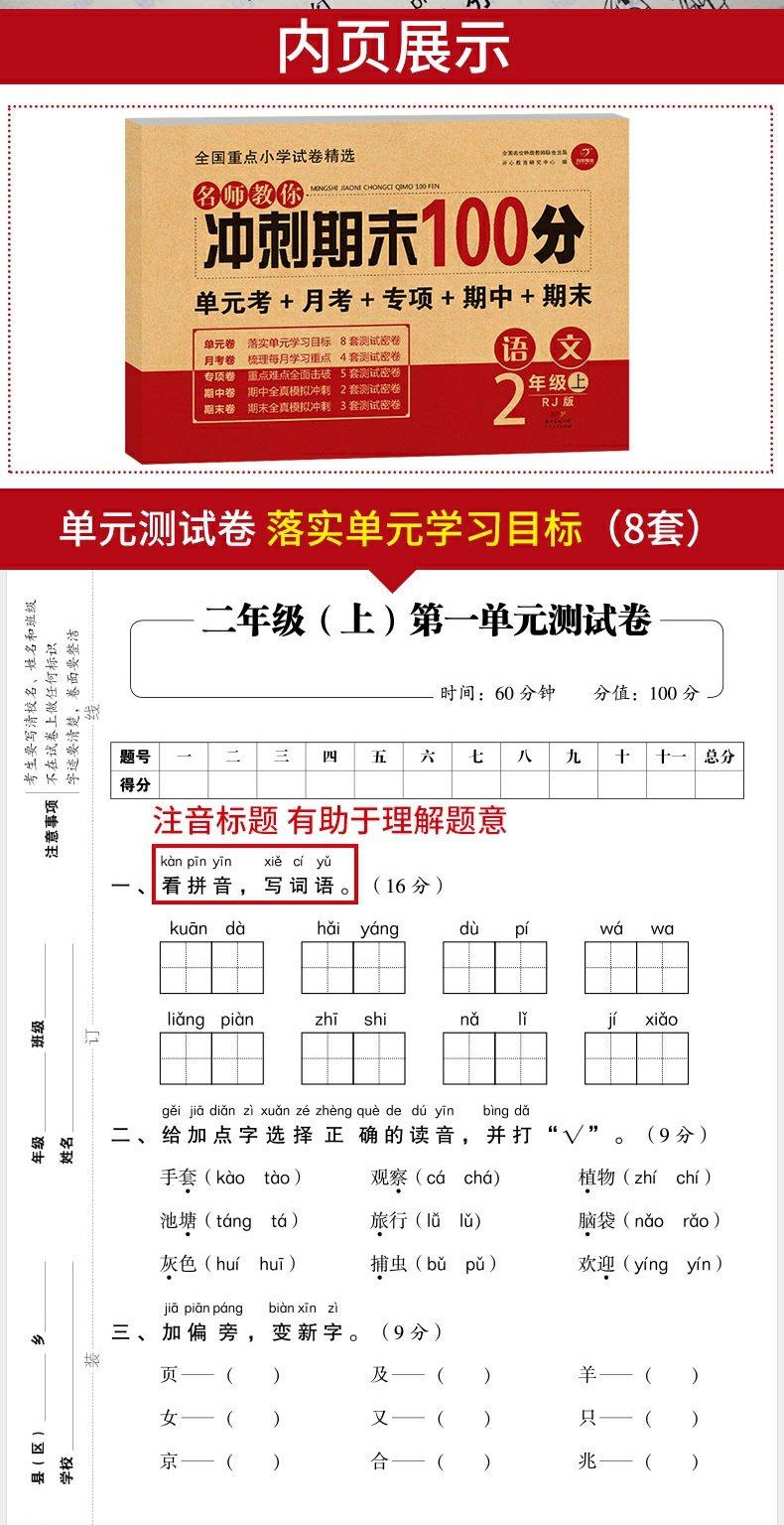 二年级上册人教版,语文+数学,同步单元冲刺,专项突破提高,激发孩子学习兴趣,让孩子在家可以预习,让您的孩子赢在起跑点上!