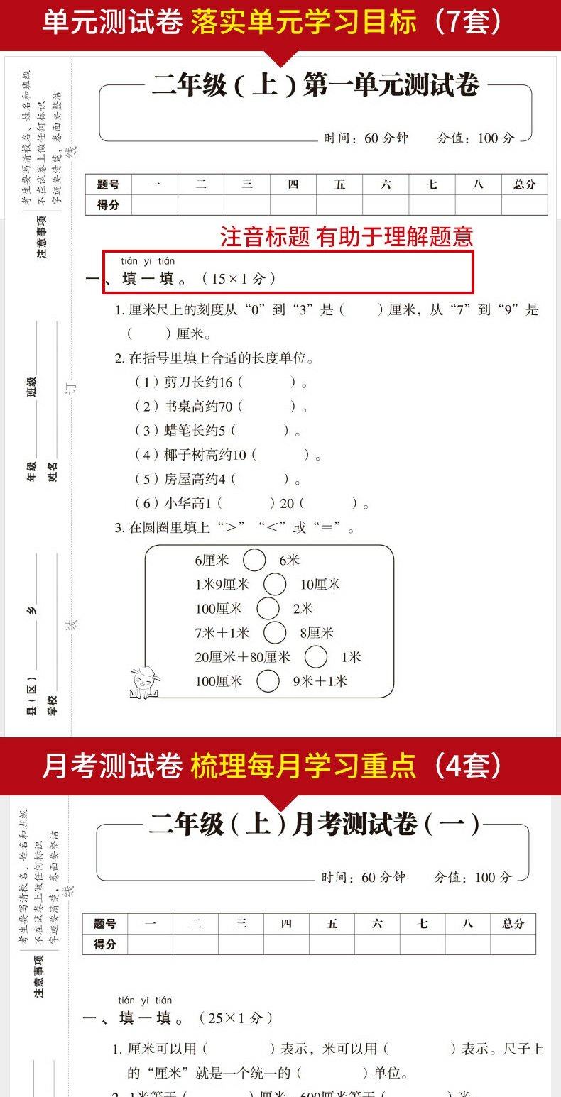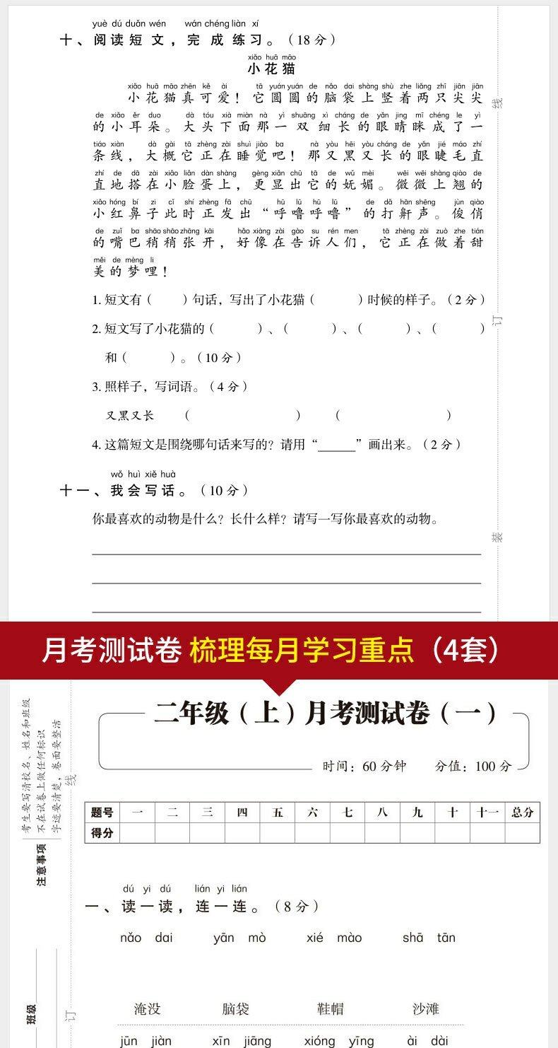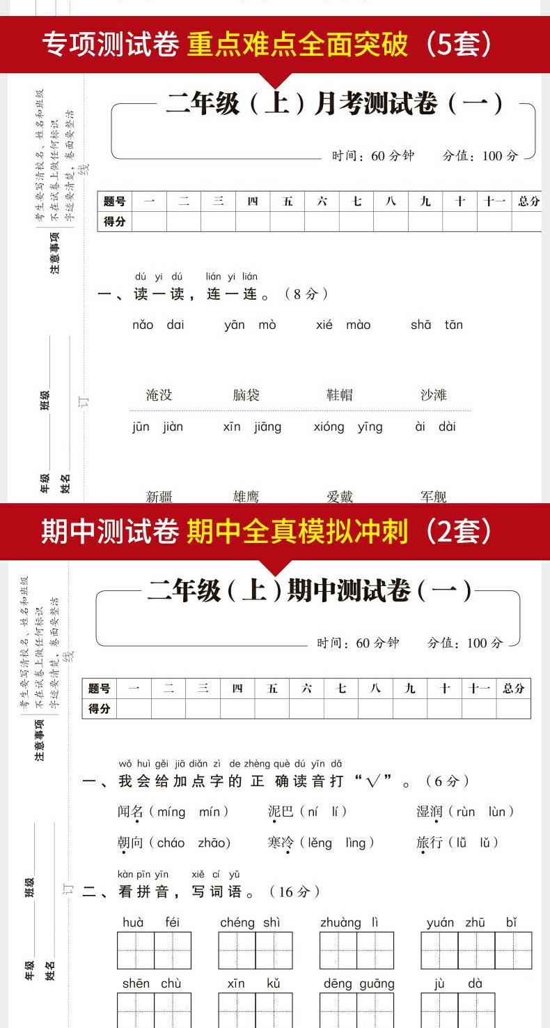 二年级上册人教版,语文+数学,同步单元冲刺,专项突破提高,激发孩子学习兴趣,让孩子在家可以预习,让您的孩子赢在起跑点上!