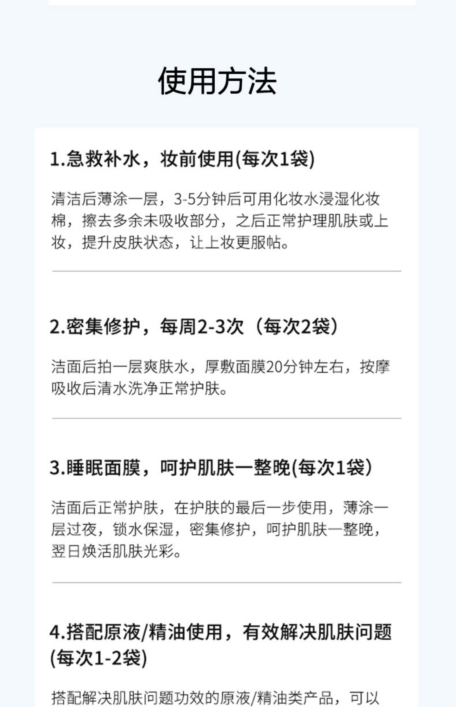 【拍1件多送5片】券不限领,到手15片,全国包邮!蕴含积雪草修护成分,助你保持透亮水光肌;松弛皱纹、干燥缺水、肌肤下垂等,统统搞定!敏感肌也能用,渗入肌底,水嫩美肌轻松睡出来!【赠运费险】