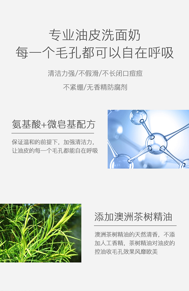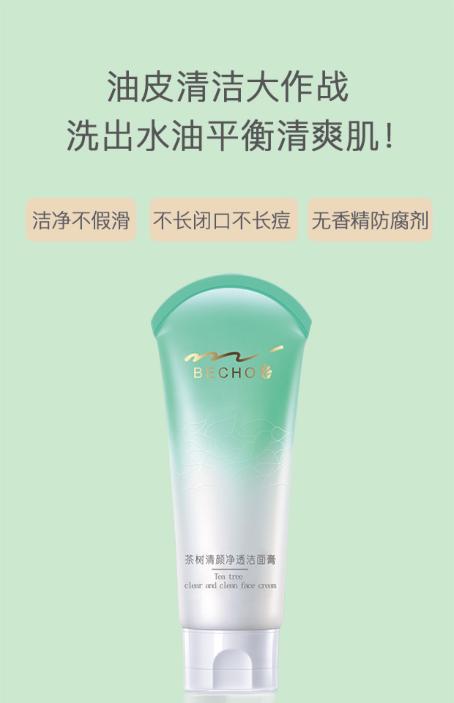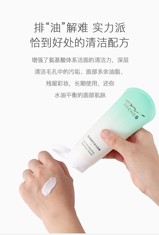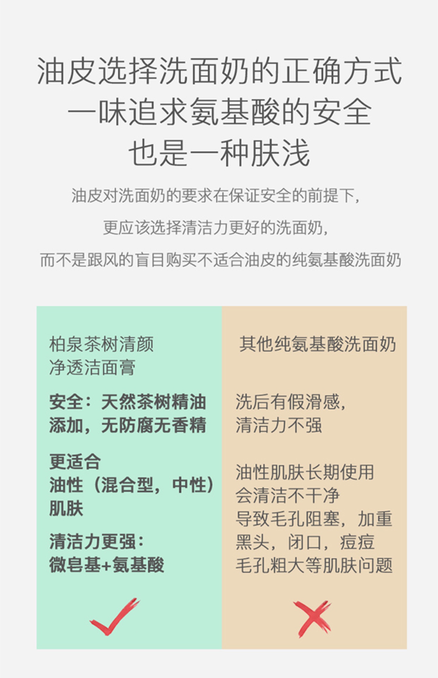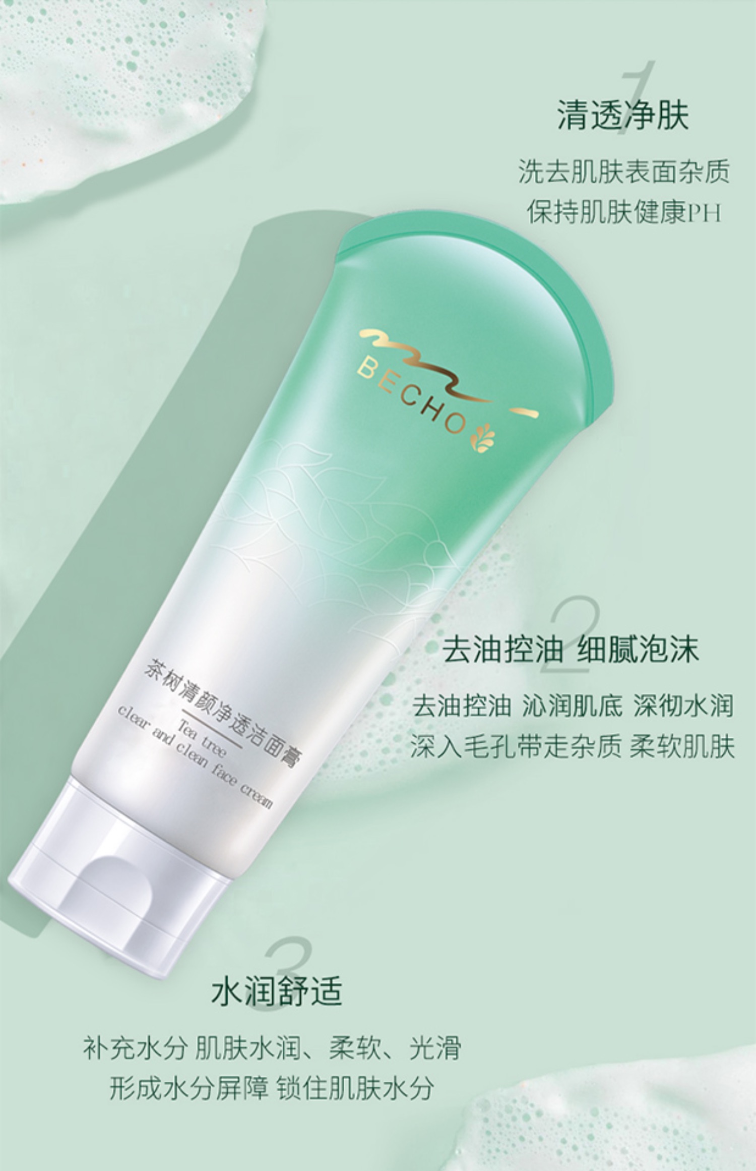 柏泉茶树清颜净透洁面乳100g,无防腐剂,无香精,适合油性皮肤/混合型皮肤~