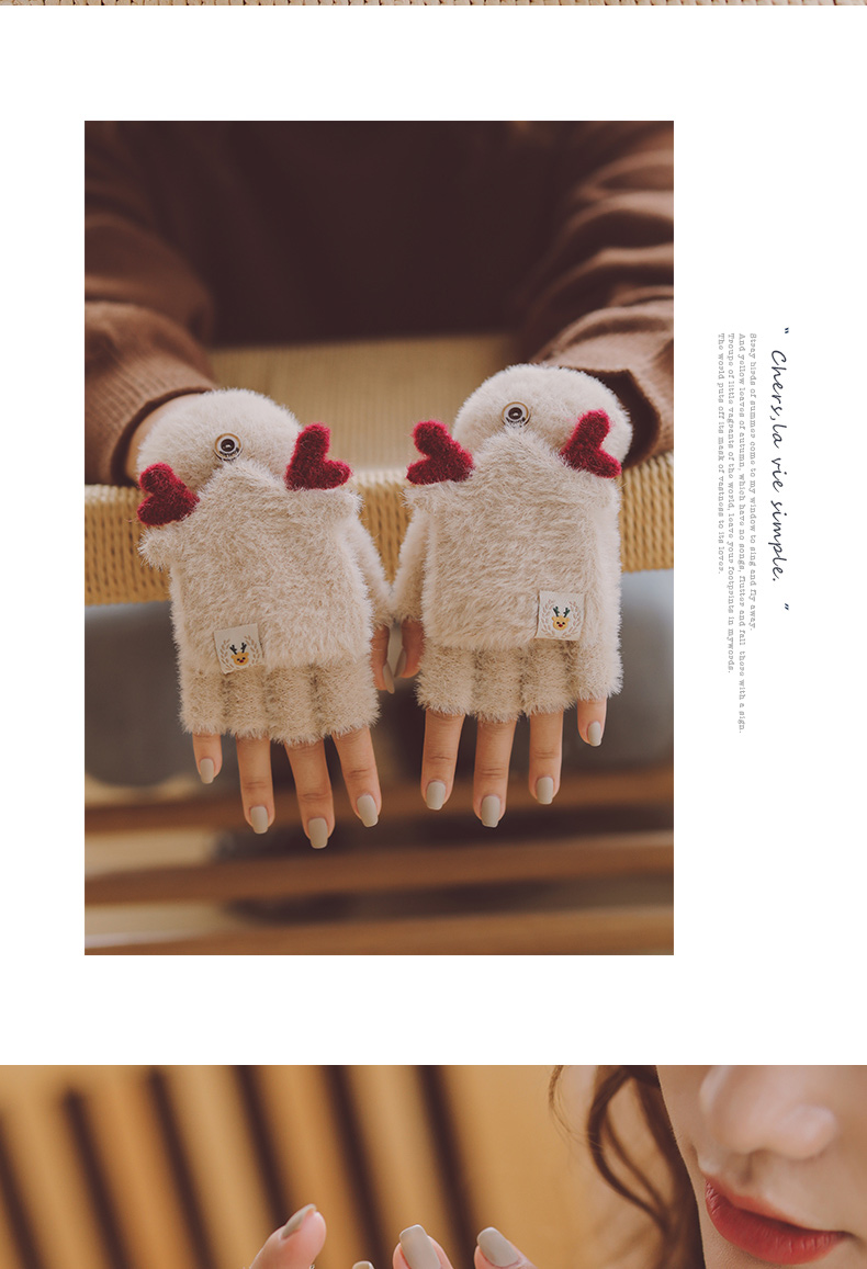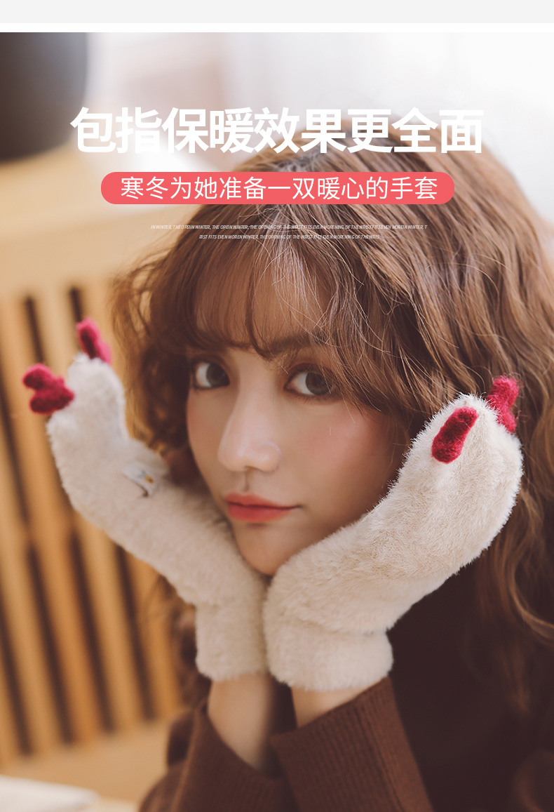 韩版卡通ins加厚棉保暖防寒毛线手套